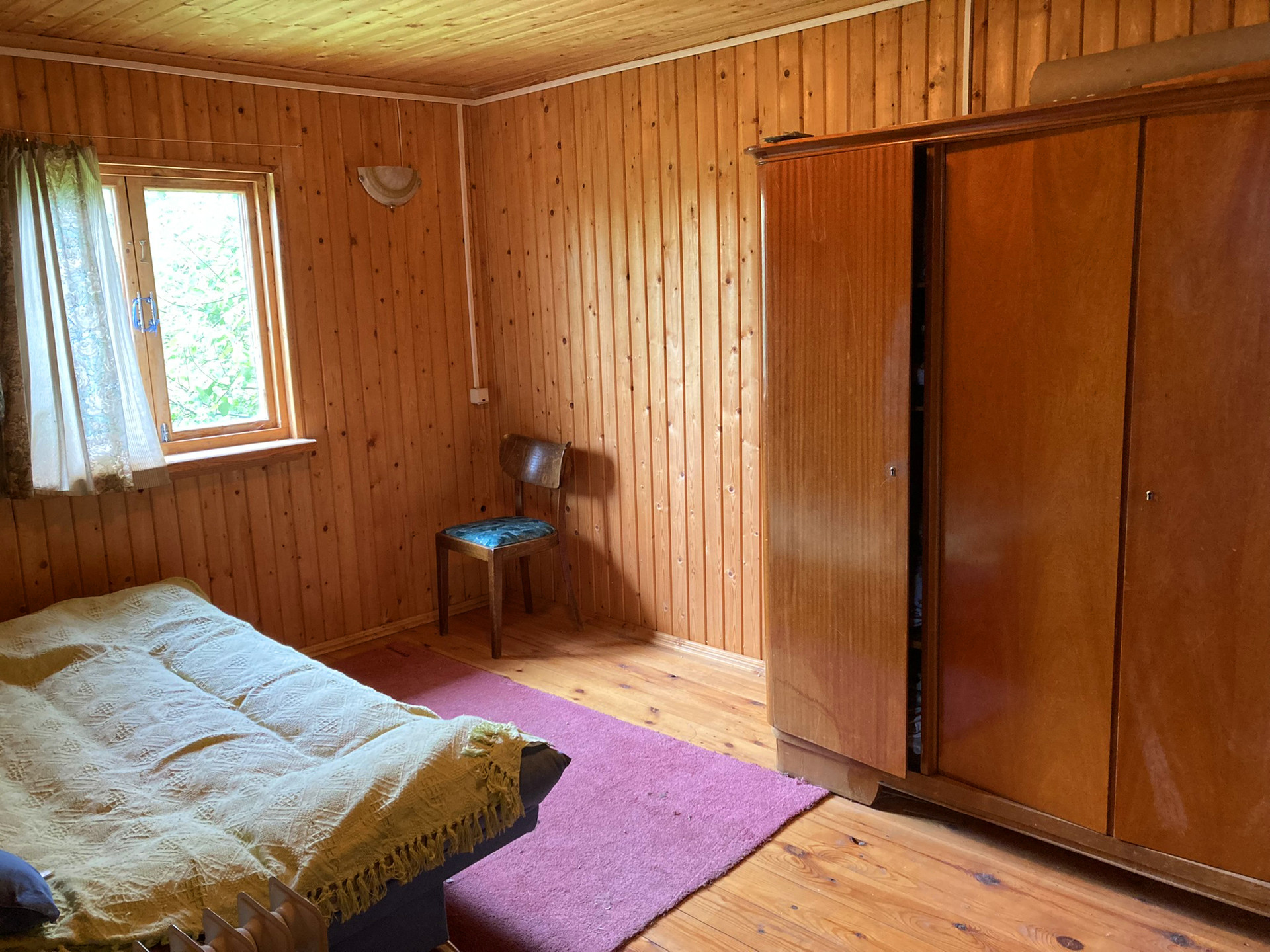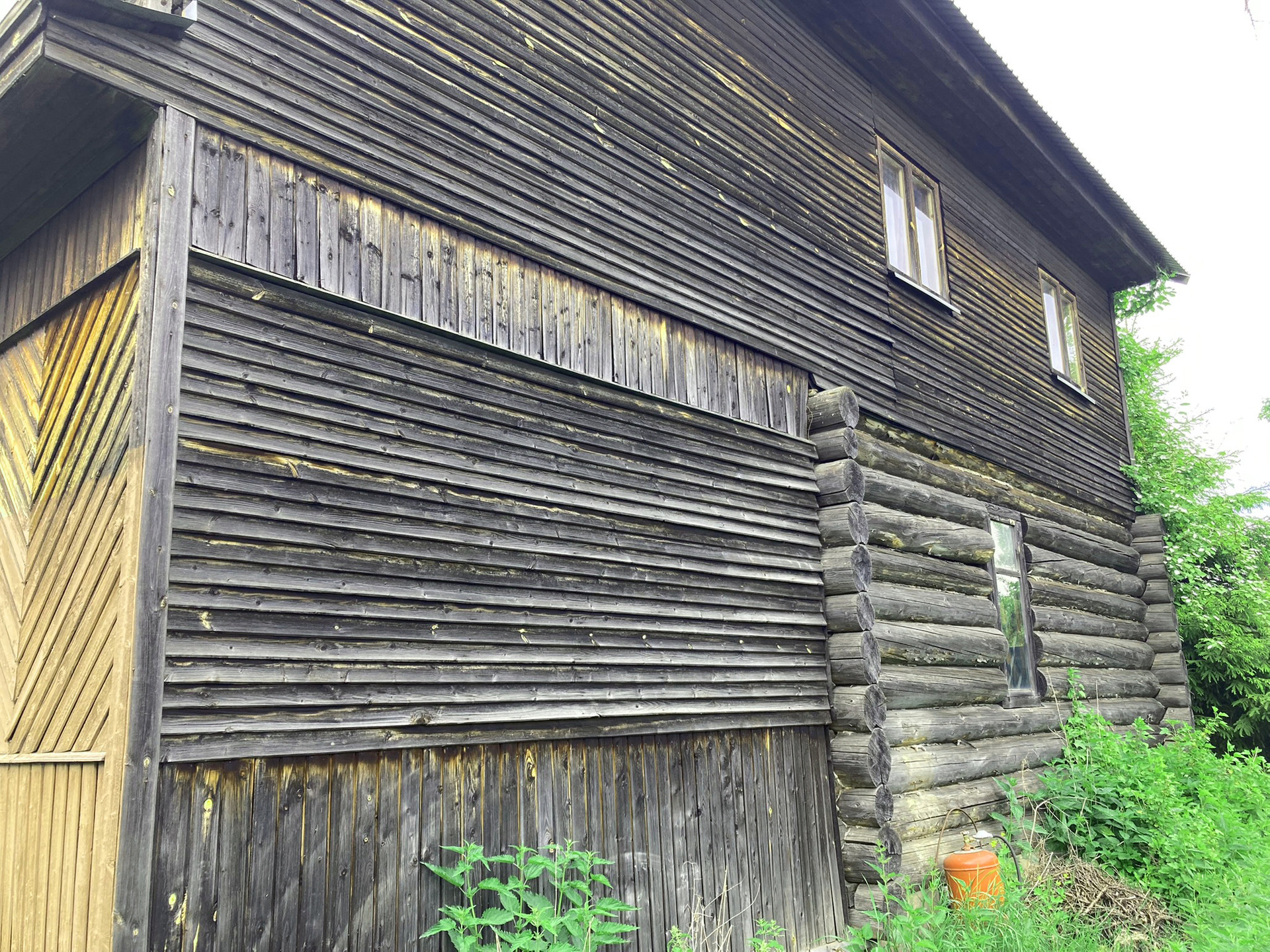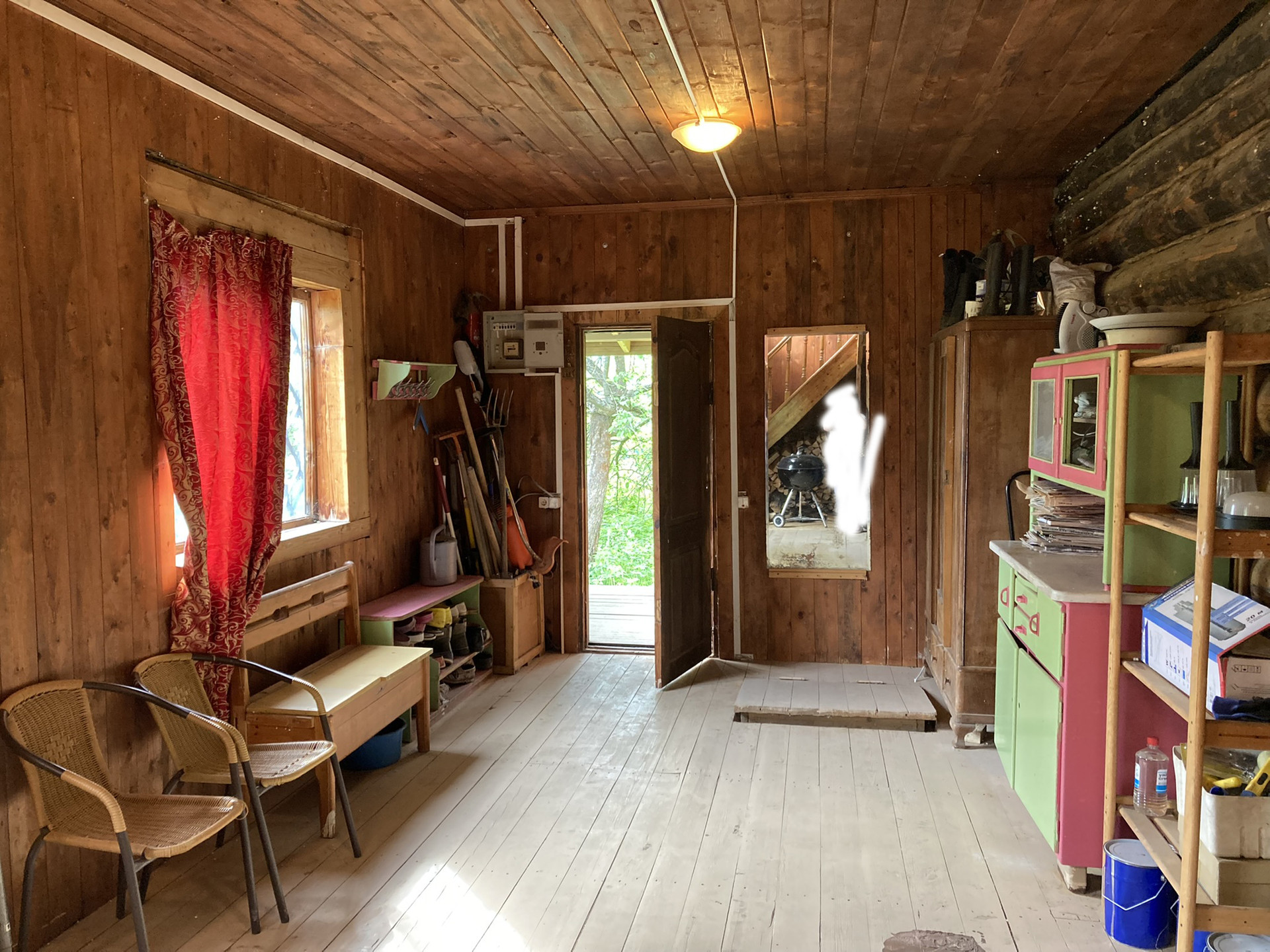 Первый этаж кухня-гостиная, санузел, застекленная веранда. Второй этаж: застекленная веранда, четыре спальни. В гостиной кирпичная печь/камин. В доме очень сухо, совершенно нет ни влажности, ни затхлого запаха.