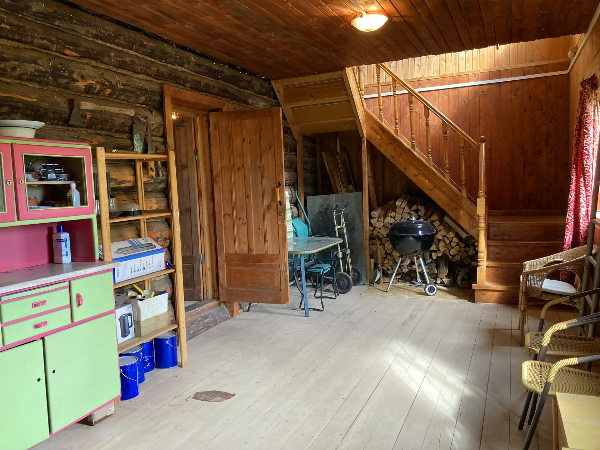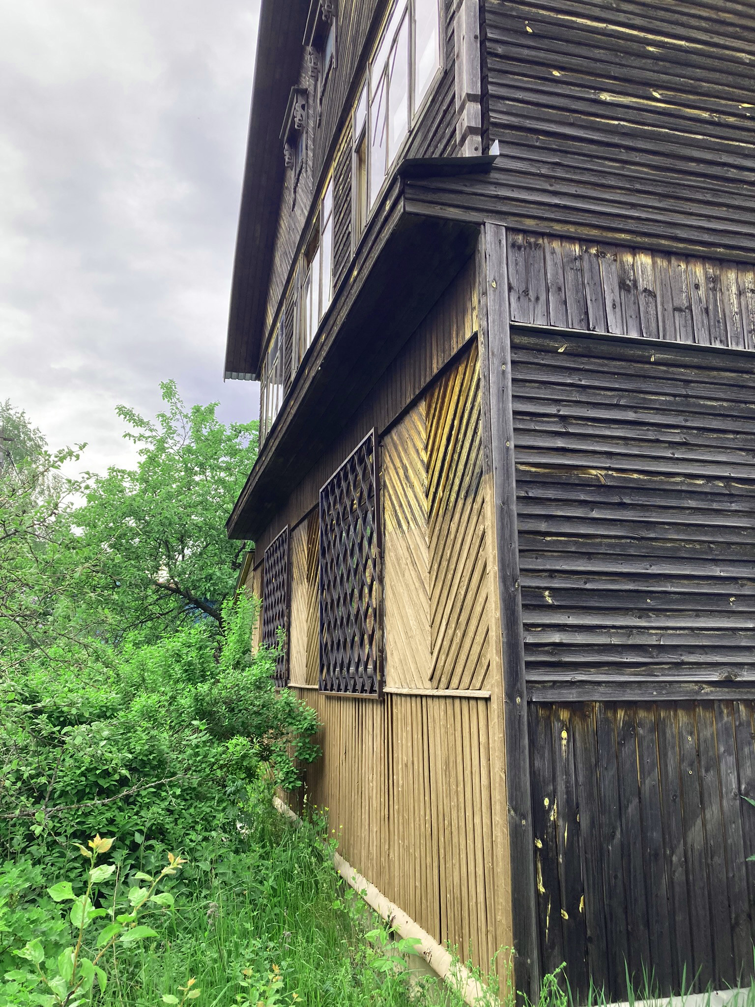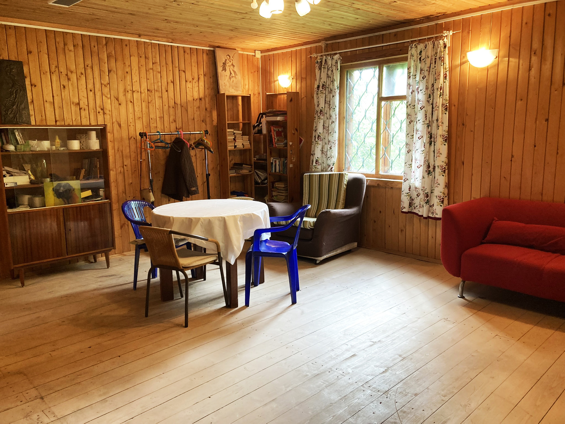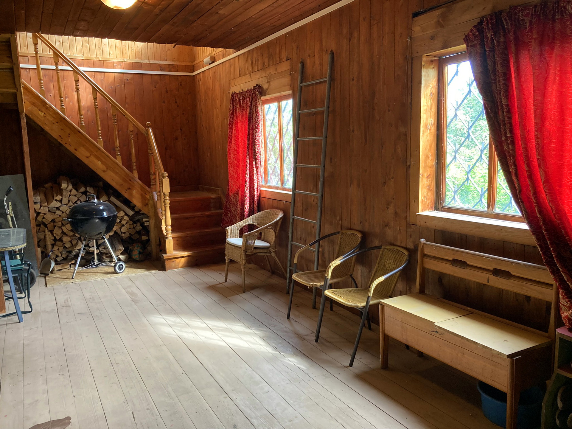 Первый этаж кухня-гостиная, санузел, застекленная веранда. Второй этаж: застекленная веранда, четыре спальни. В гостиной кирпичная печь/камин. В доме очень сухо, совершенно нет ни влажности, ни затхлого запаха.