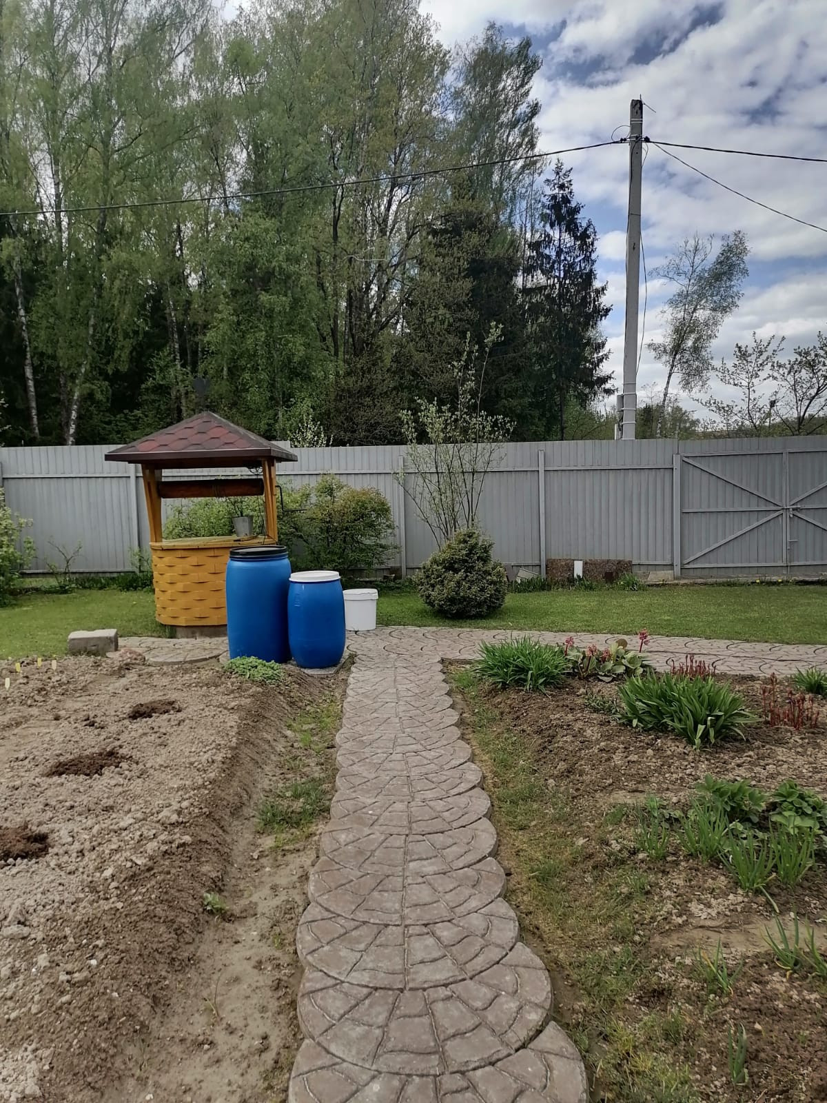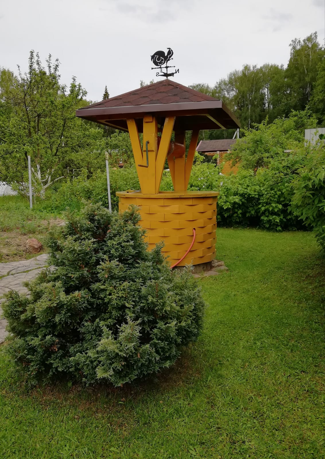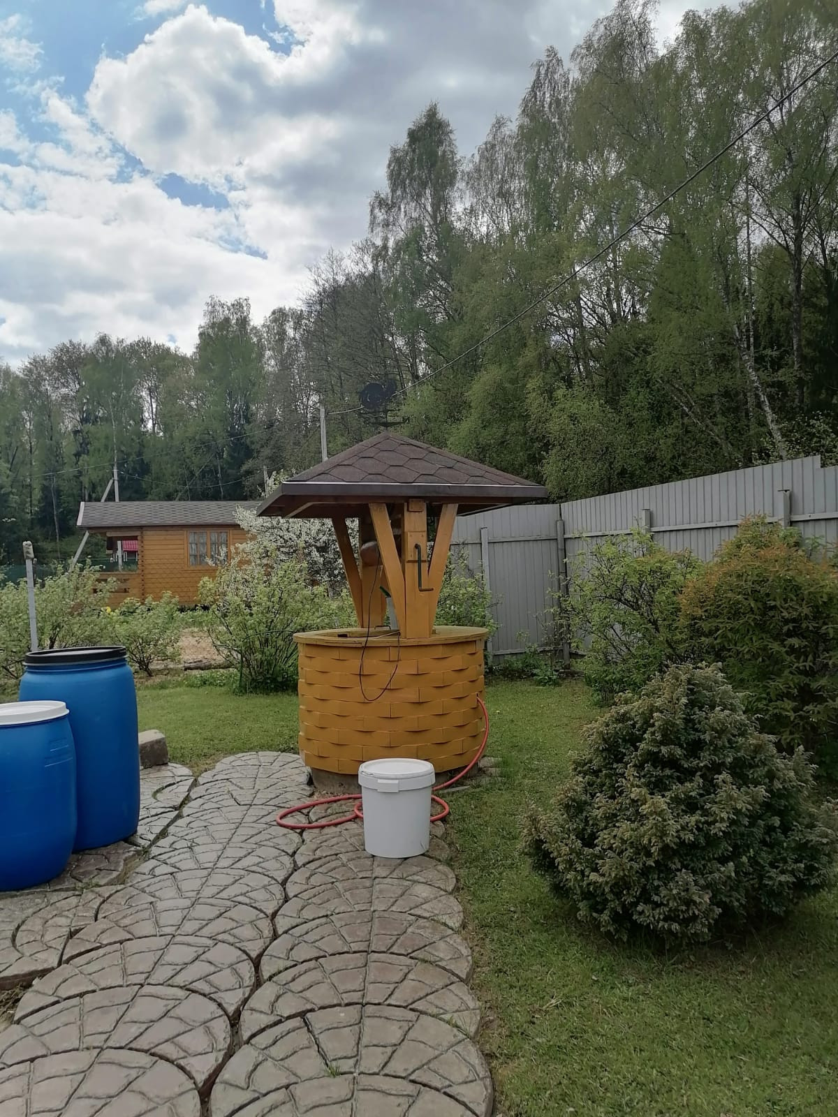 Колодец на 6 колец с погружным насосом, подключается к наружной розетке дома.