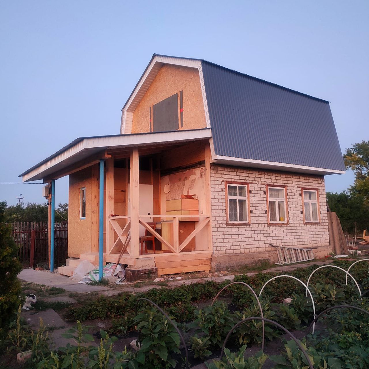Мы сделали самую грязную работу- построили абсолютно новую мансарду, осталось лишь проявить свой вкус и отделать её внутри согласно своим желаниям. На участке есть поливочная вода, а также своя скважина и ёмкость.