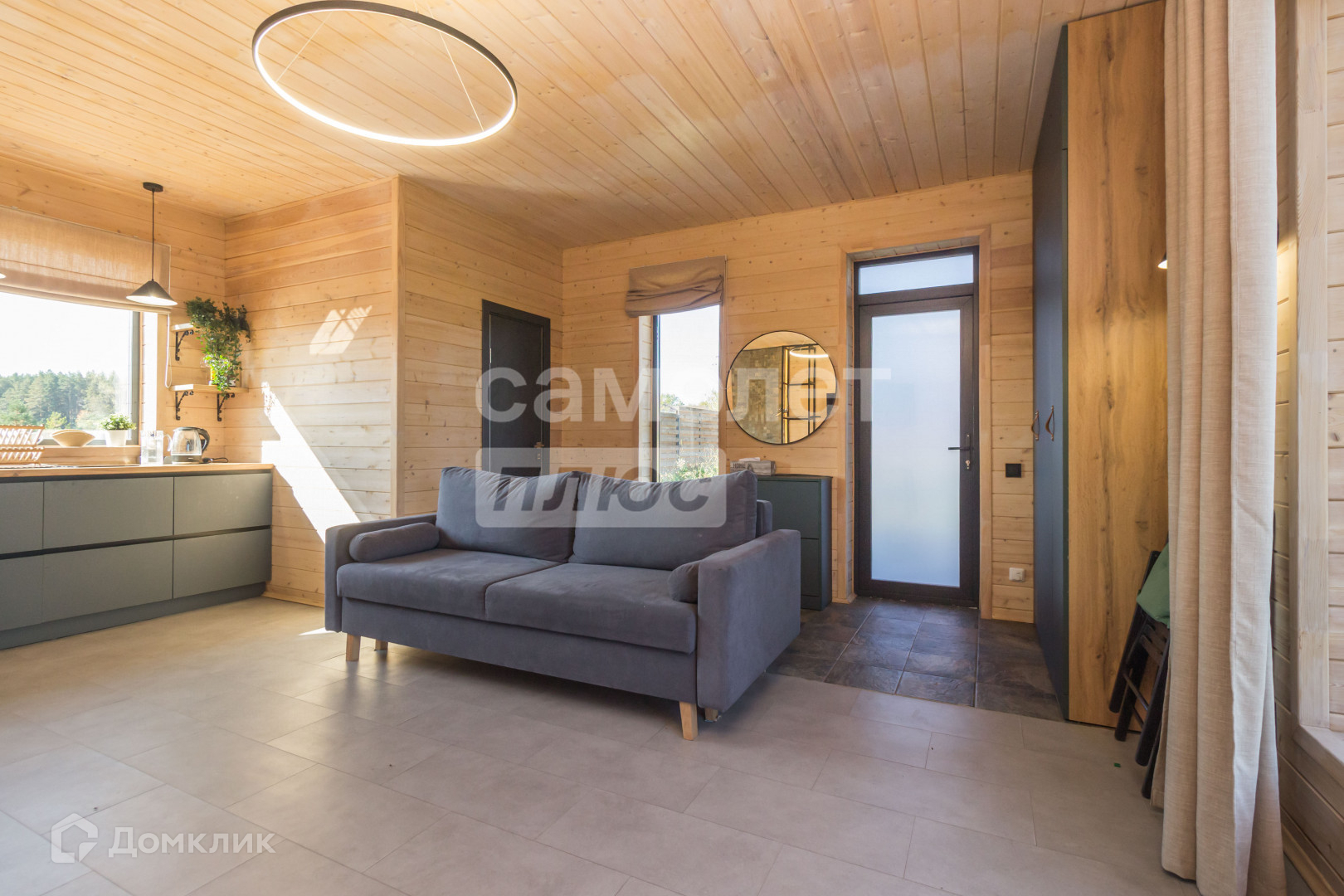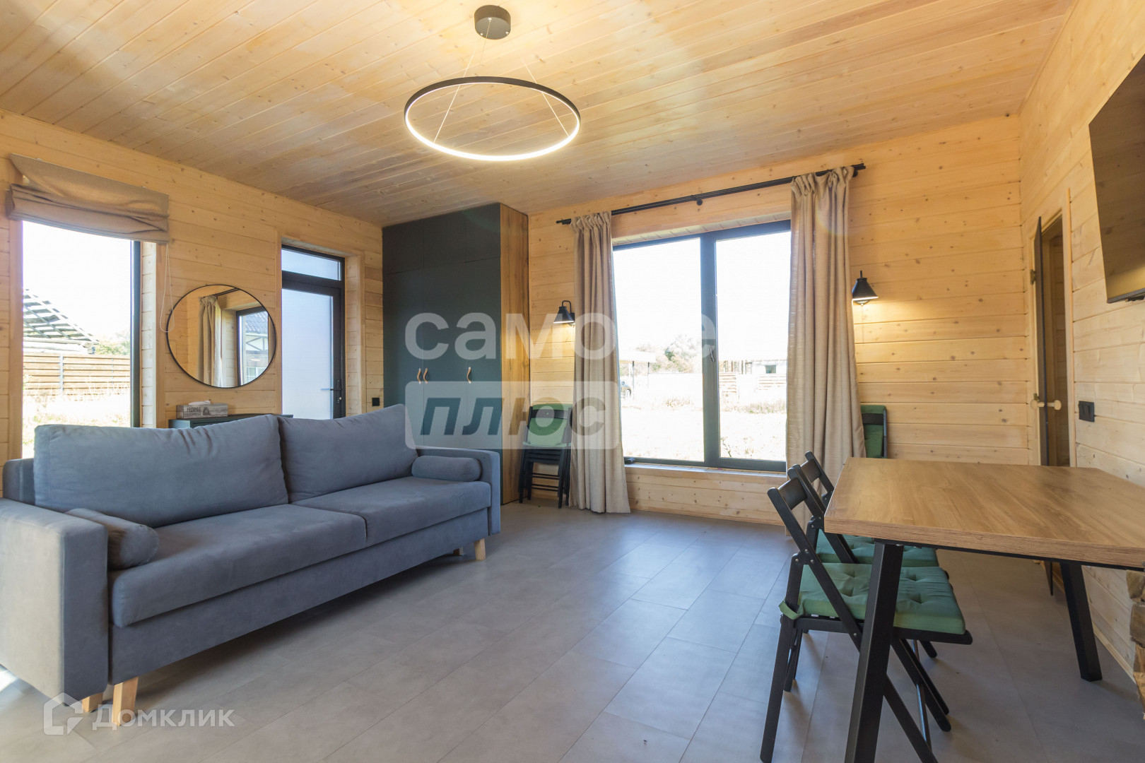 Дом с баней, 50кв.м. Материал стен - арболитовые панели, снаружи обшит клинкерной плиткой, с подцветкой, установлены витражные окна, внутри имитация бруса, пол - кварц винил с электронным теплым полом по всему дому. Оборудована кухня, санузел с водонагревателем, душевая, вся встроенное остается после покупки, дровяная печь с дровяником.