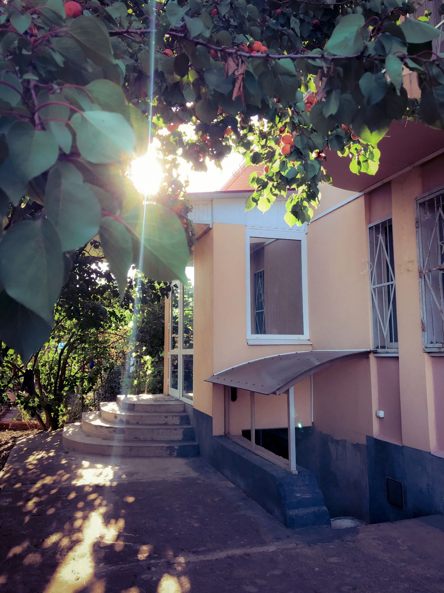 Фруктовые деревья: вишня, абрикос, яблони, груша, черешня, шелковица.