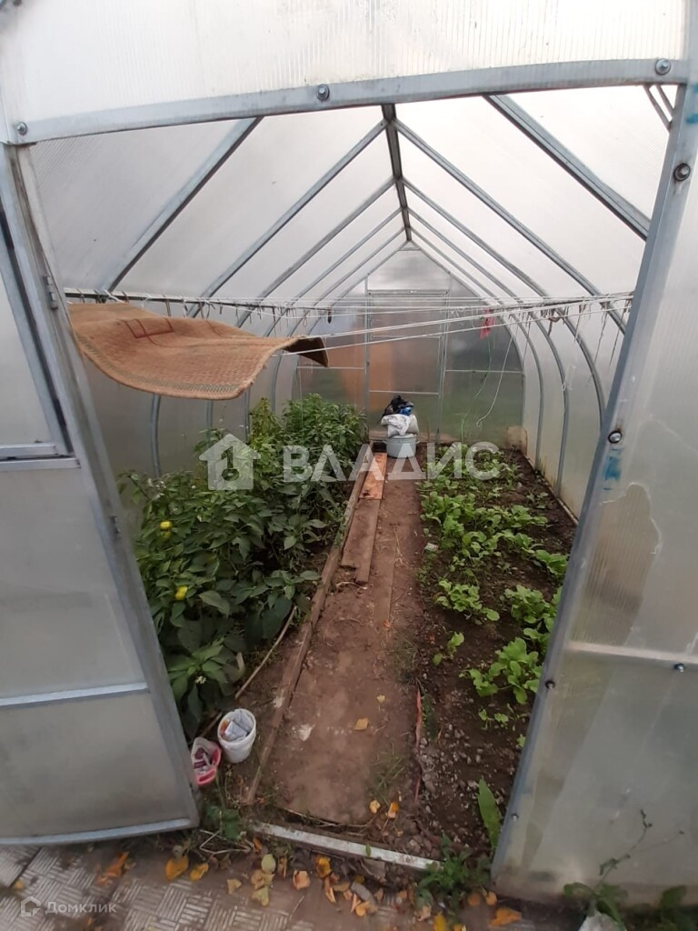 Добротная  теплица, плодовые деревья и кустарники.