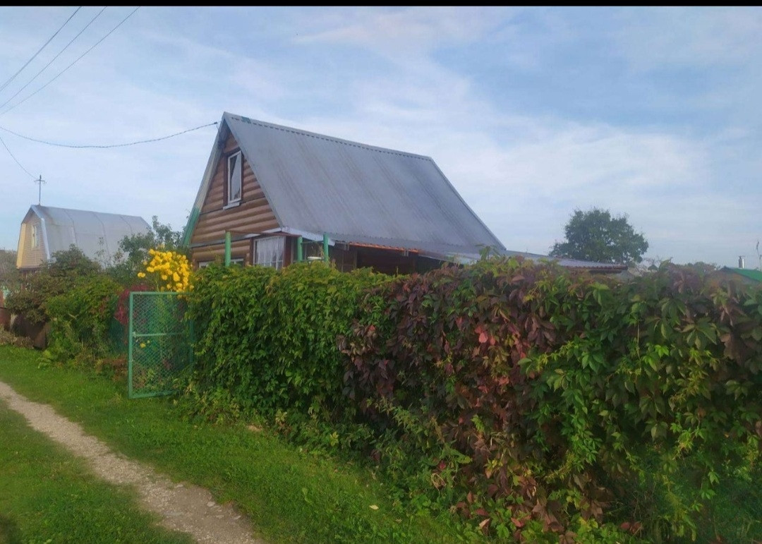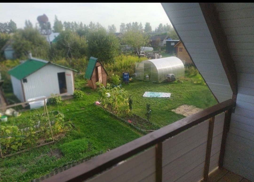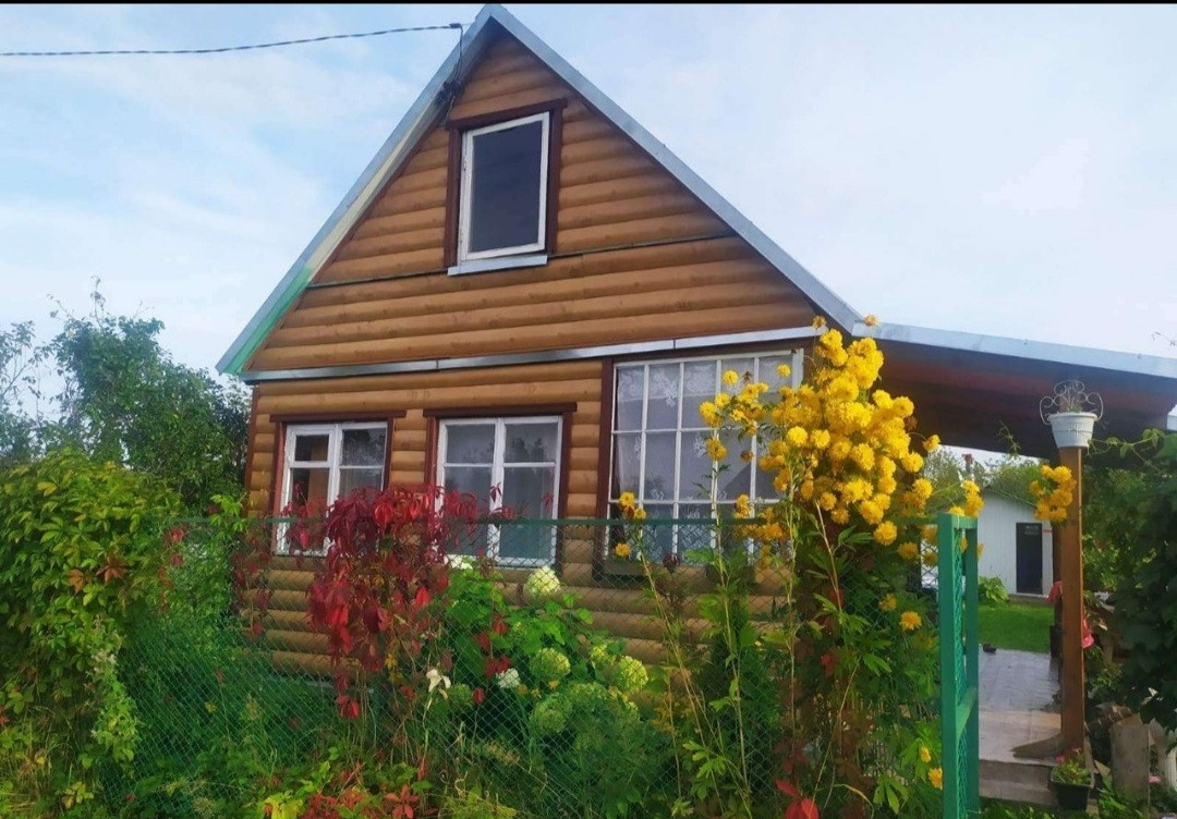 Участок 5 соток, есть парковочное место под машину. Дом 2 этажный. На 1 этаже просторная кухня, 2 комнаты.  На втором этаже 1 комната. Домик обшит панелями, следовательно не требует покраски. На участке новая теплица, большая пристроенная к дому беседка. Посажены яблони, туи, смородина, крыжовник, малина... Много цветов. СНТ находится под круглогодичной видеоохраной. Участок разделен на 2 территории, одна - под грядки, вторая - под отдых. Заезд на территорию через автоматические ворота. Около правления (недалеко от дома) скважина с чистейшей питьевой водой. Электроэнергия, вода из скважины и вода для полива  весь дачный сезон. При желании можно подключить электричество на круглый год, соседи проживают там и зимой.  На территории СНТ есть пруд для купания. Хорошие подъездные пути. Остановка общественного транспорта 107 автобус. Земля в собственности. На участке расположены баня, туалет. С дачей очень жалко расставаться,  долго решались на продажу. Продаем в связи с покупкой дома