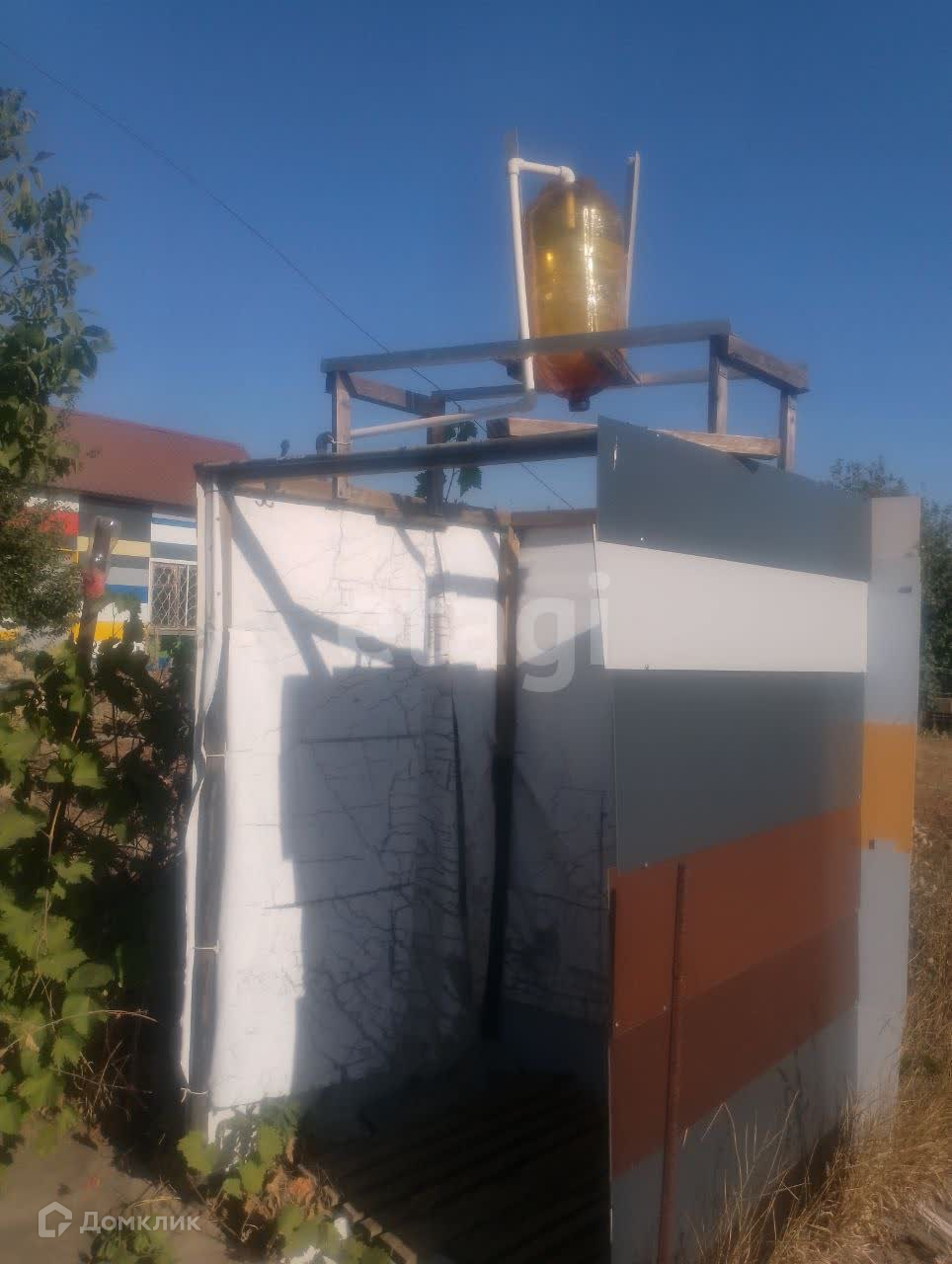 Санузел на улице. Также есть небольшой сарай для хранения инструментов.
