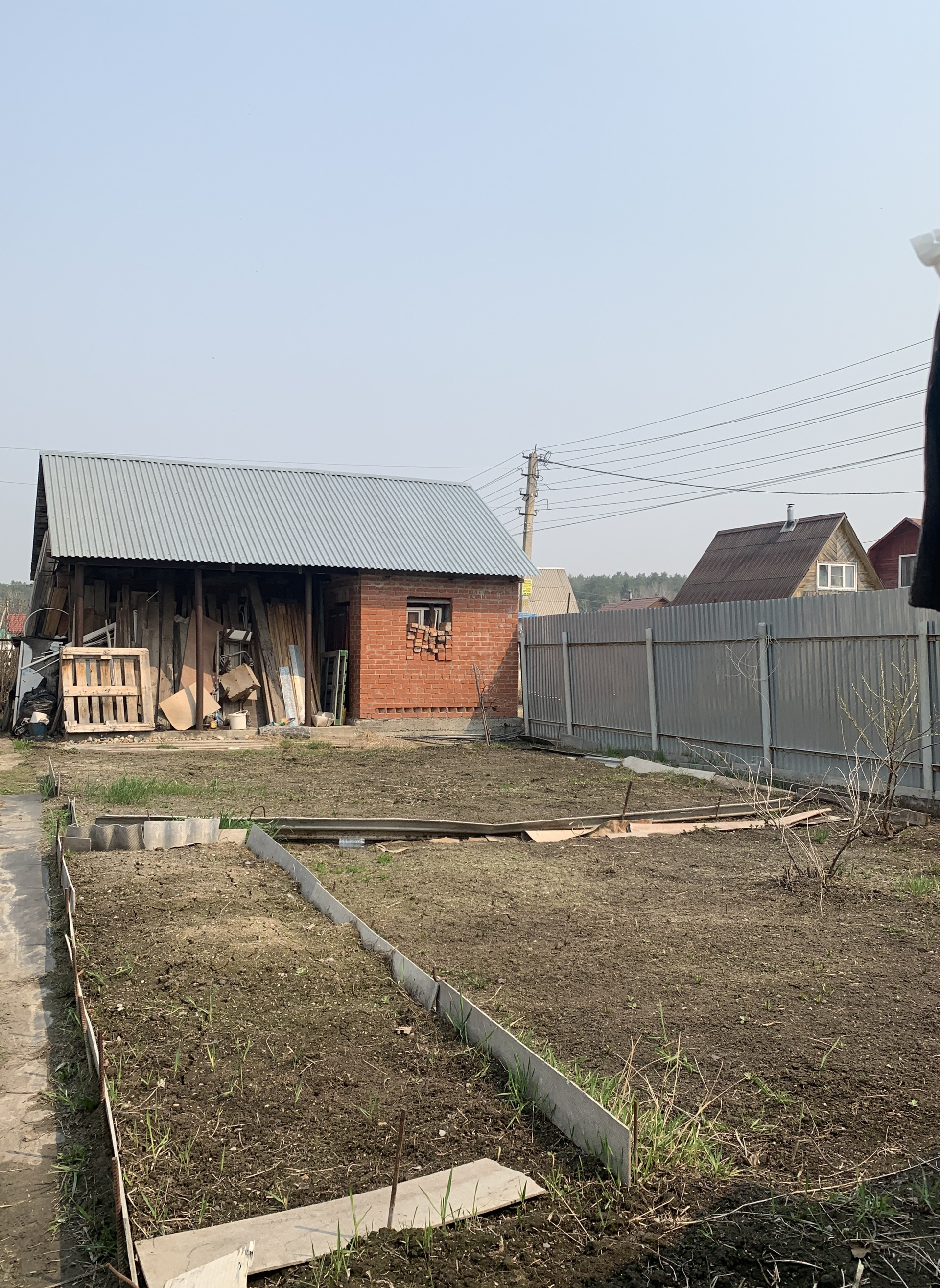 На земельном участке расположена большая кирпичная баня, осталась только внутренняя отделка. Также на участке есть сарай, много строительного материала.