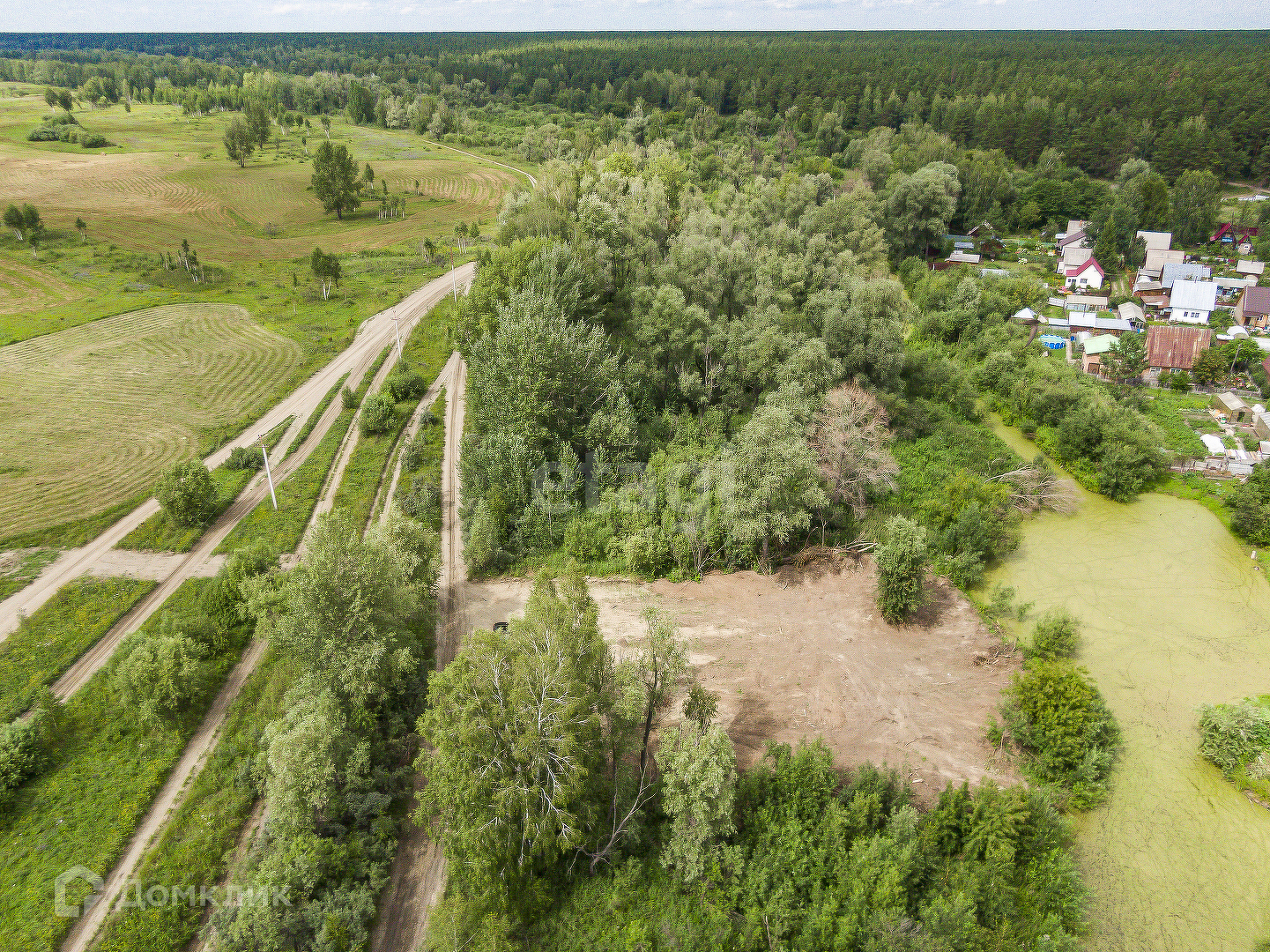 Участок расчищен,окружён лесным массивом.