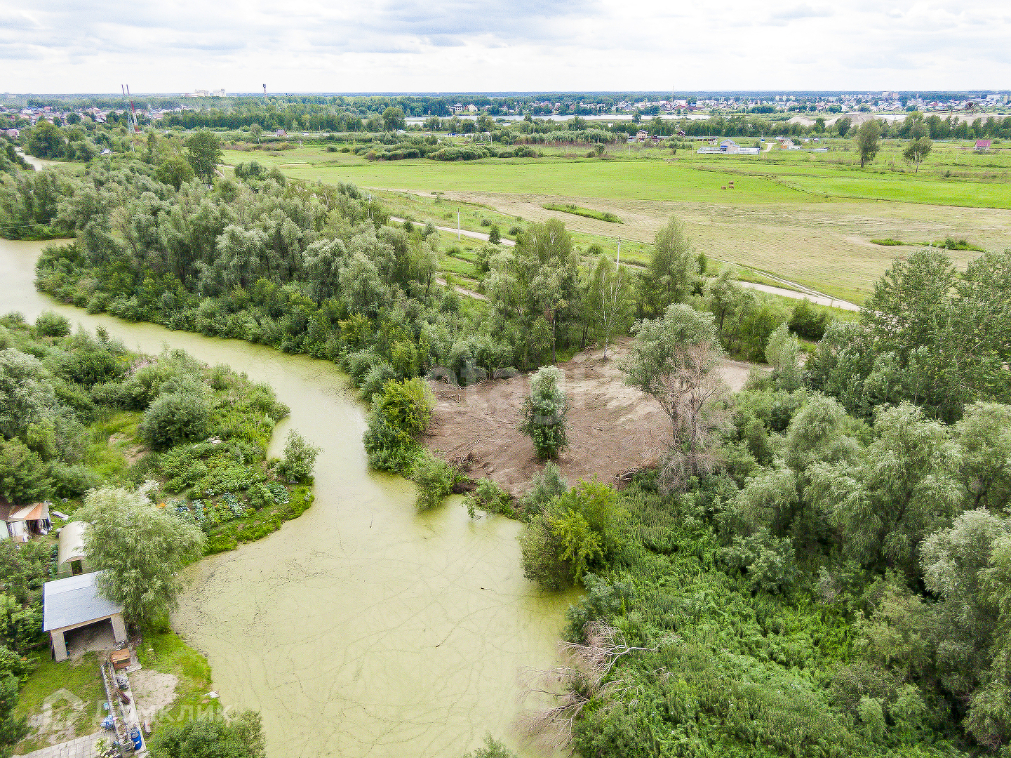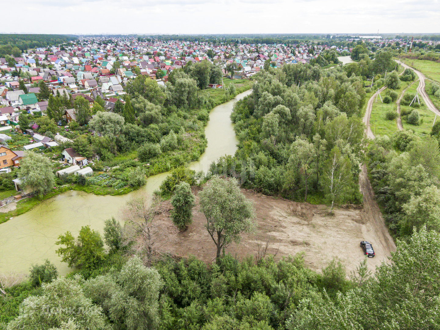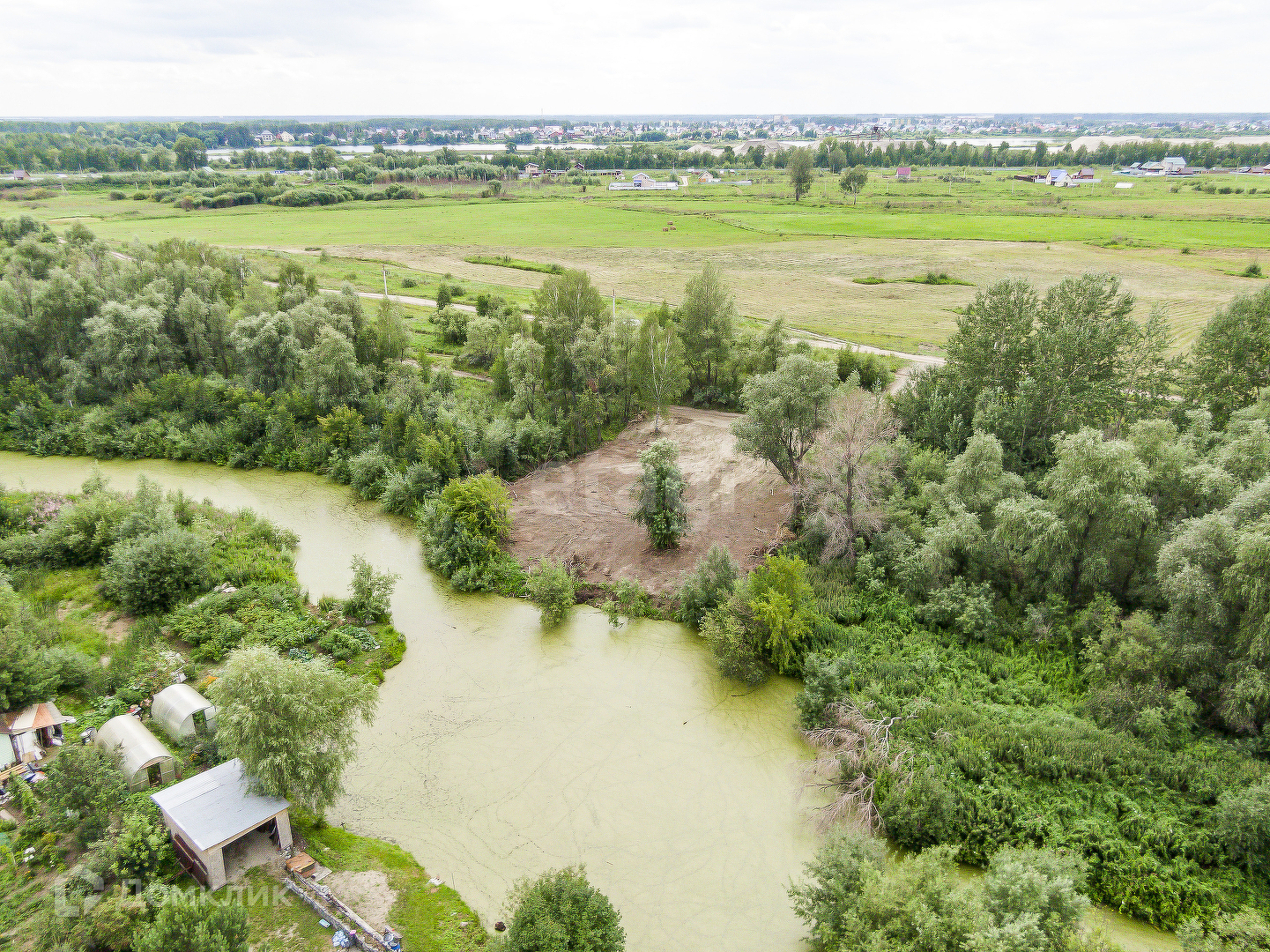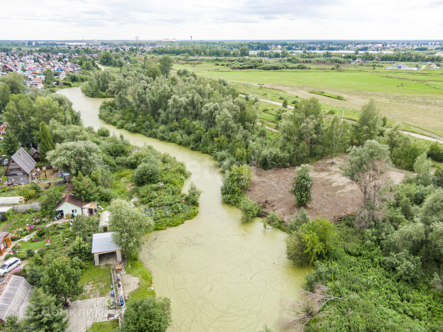 Участок ровный,чистый,расположен в живописном месте,позади протекает протока озера.