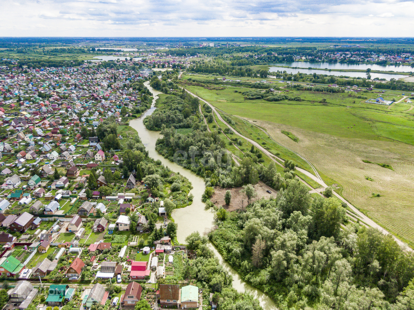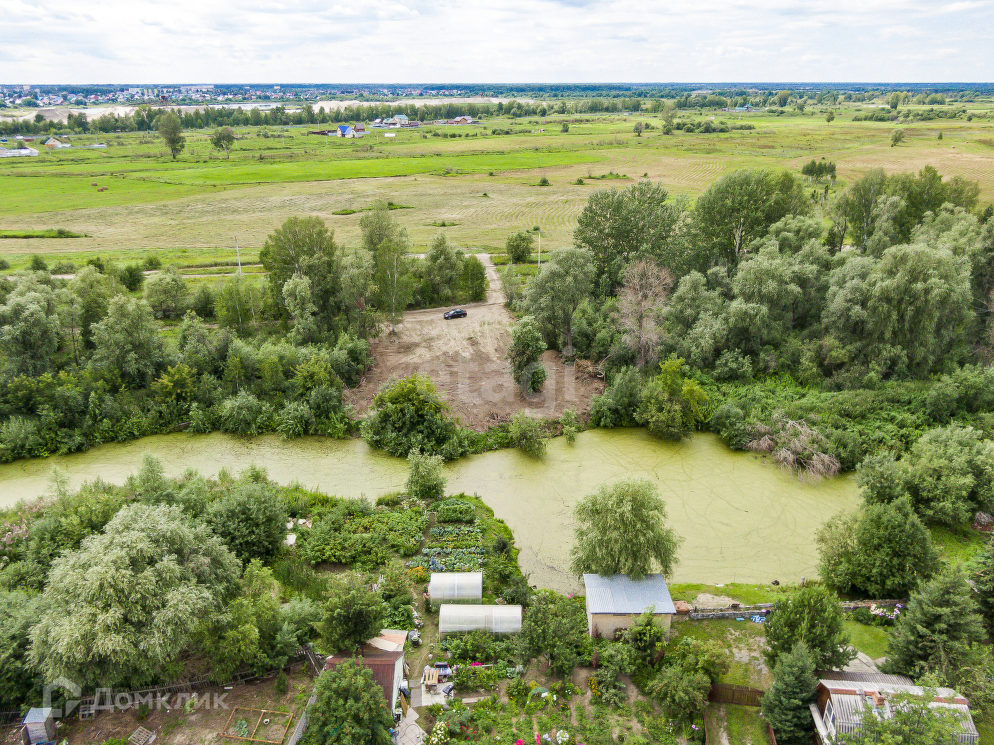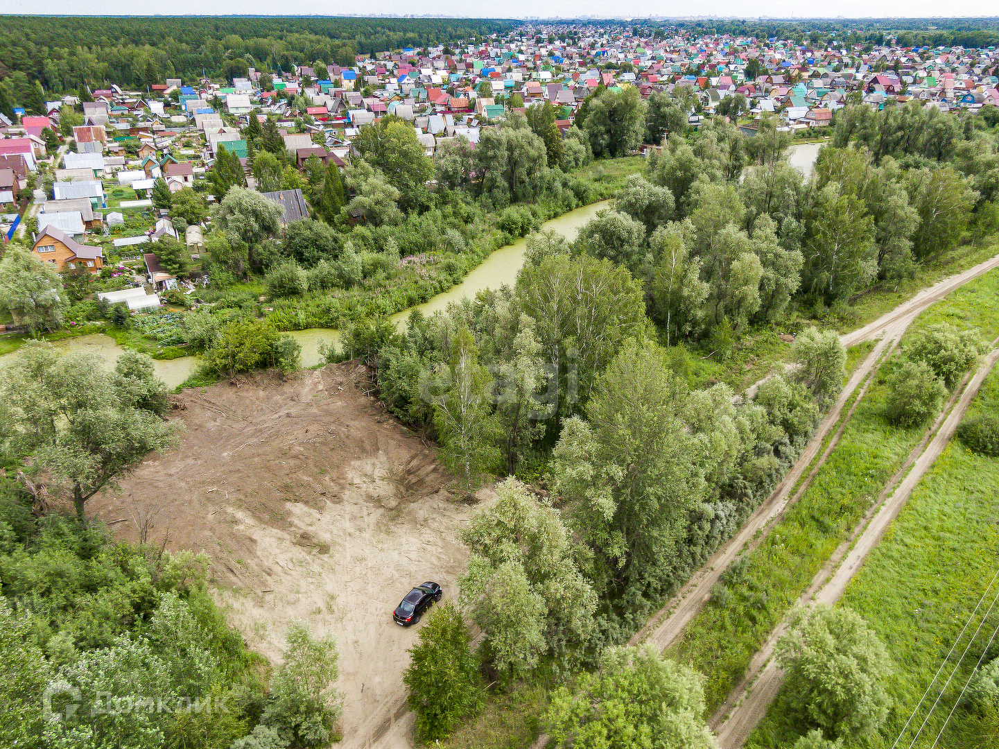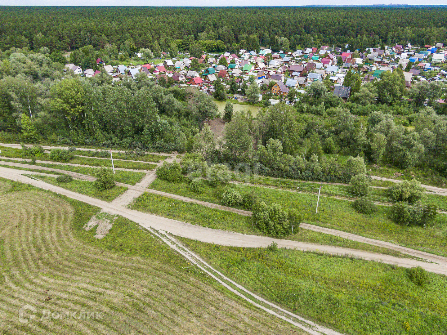 Участок ровный,чистый,расположен в живописном месте,позади протекает протока озера.