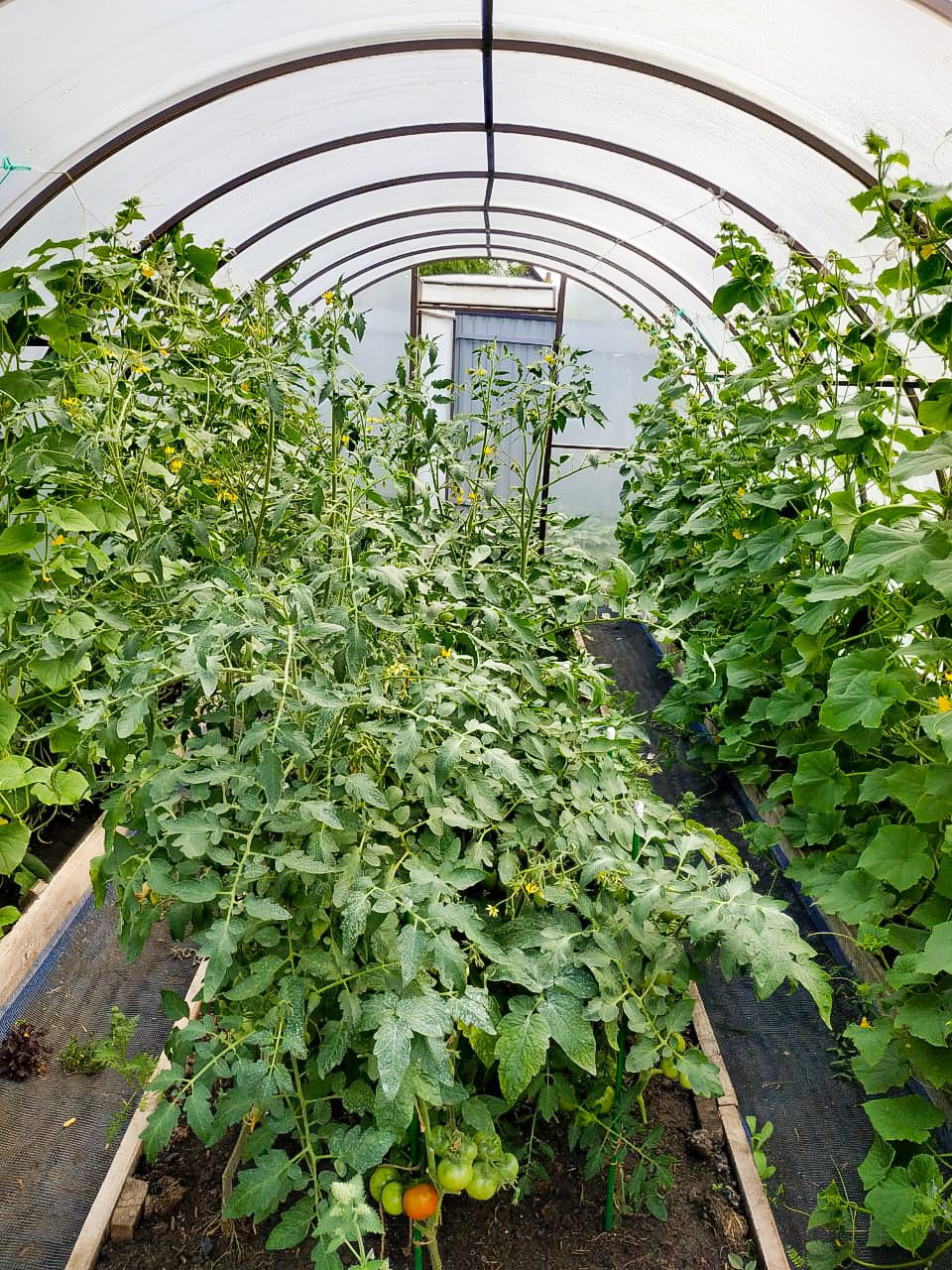 Участок 4,5 сот с грядками, теплицами и множеством насаждений.