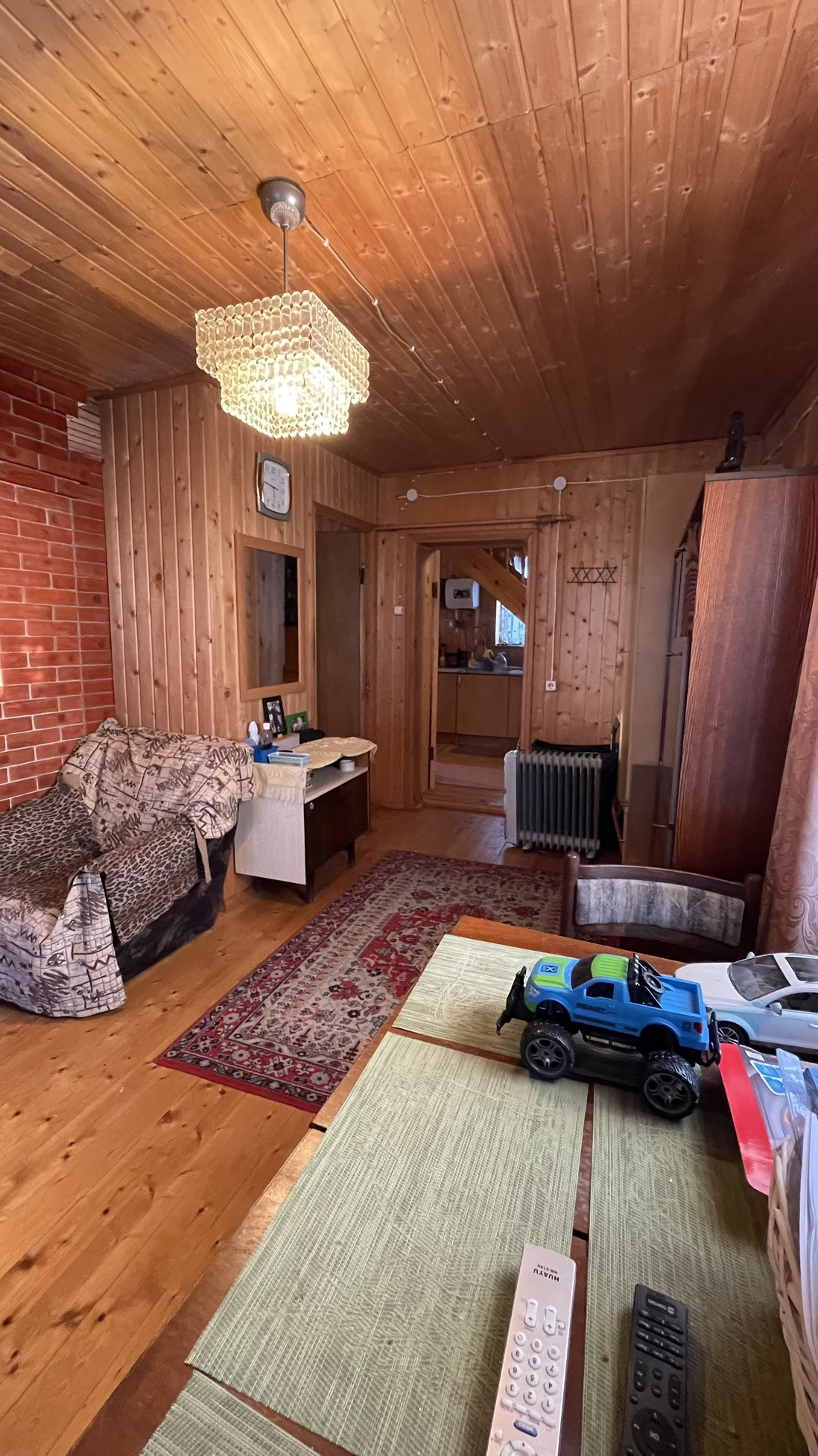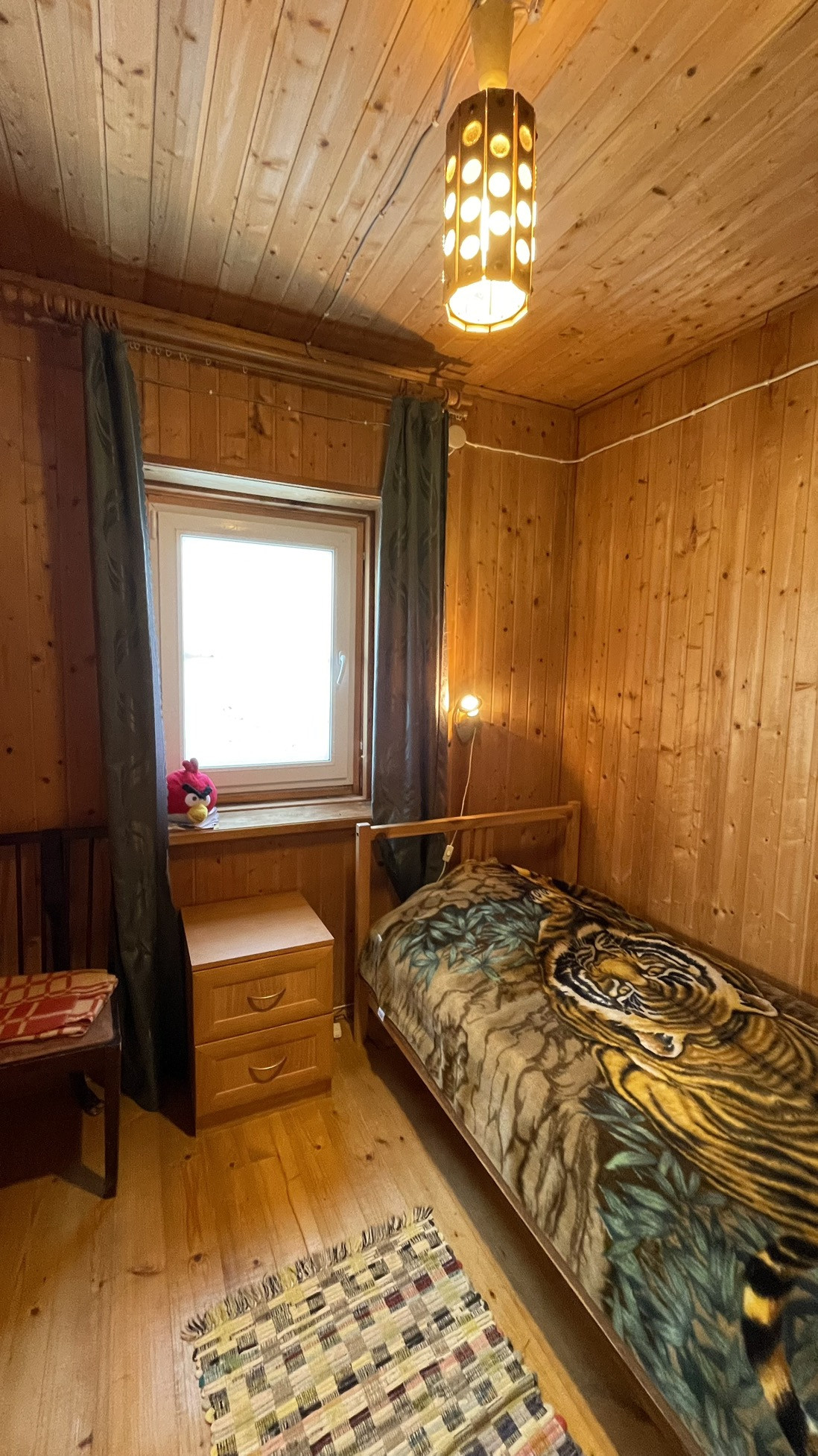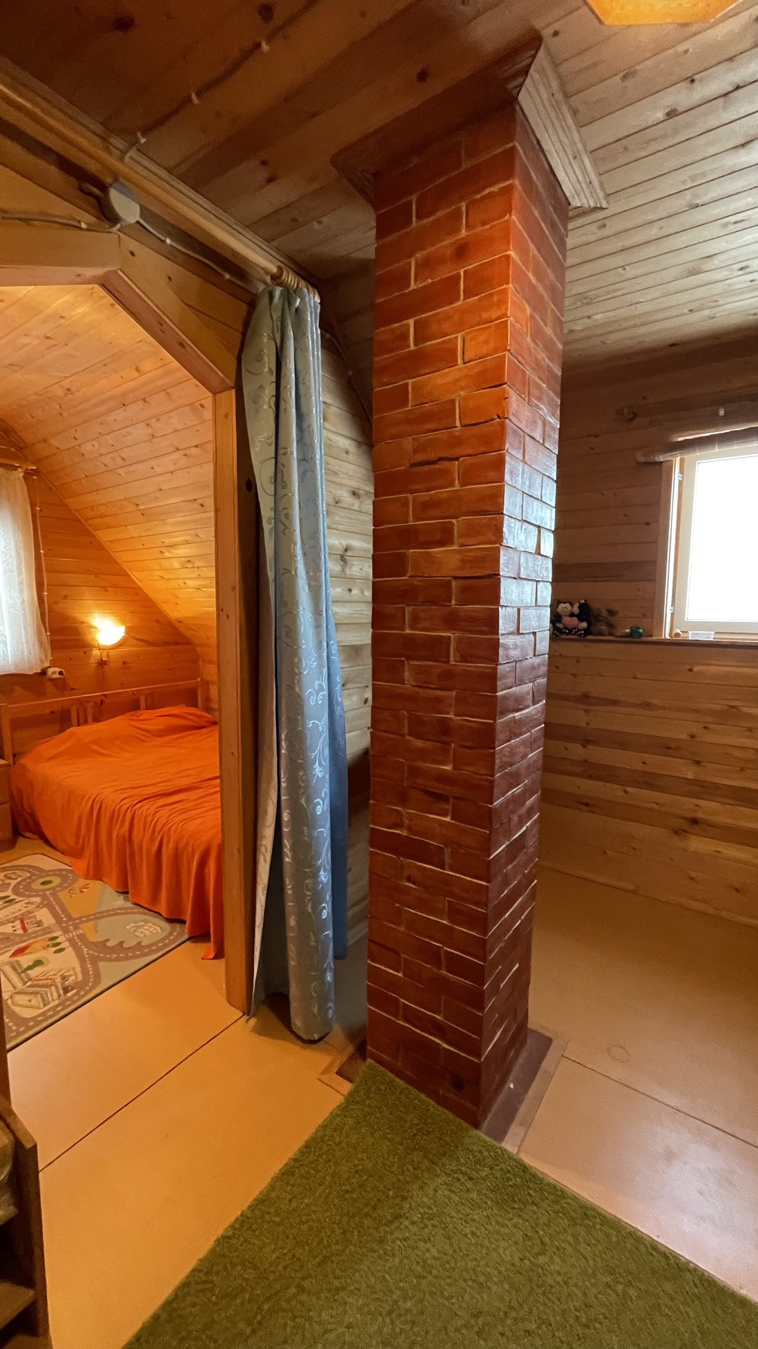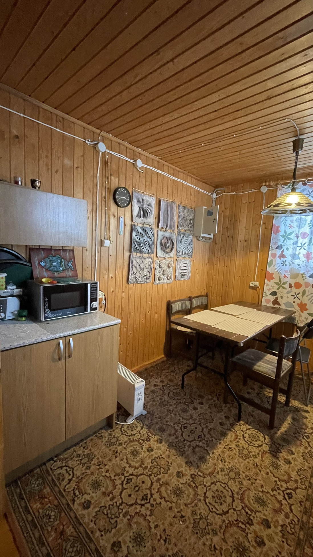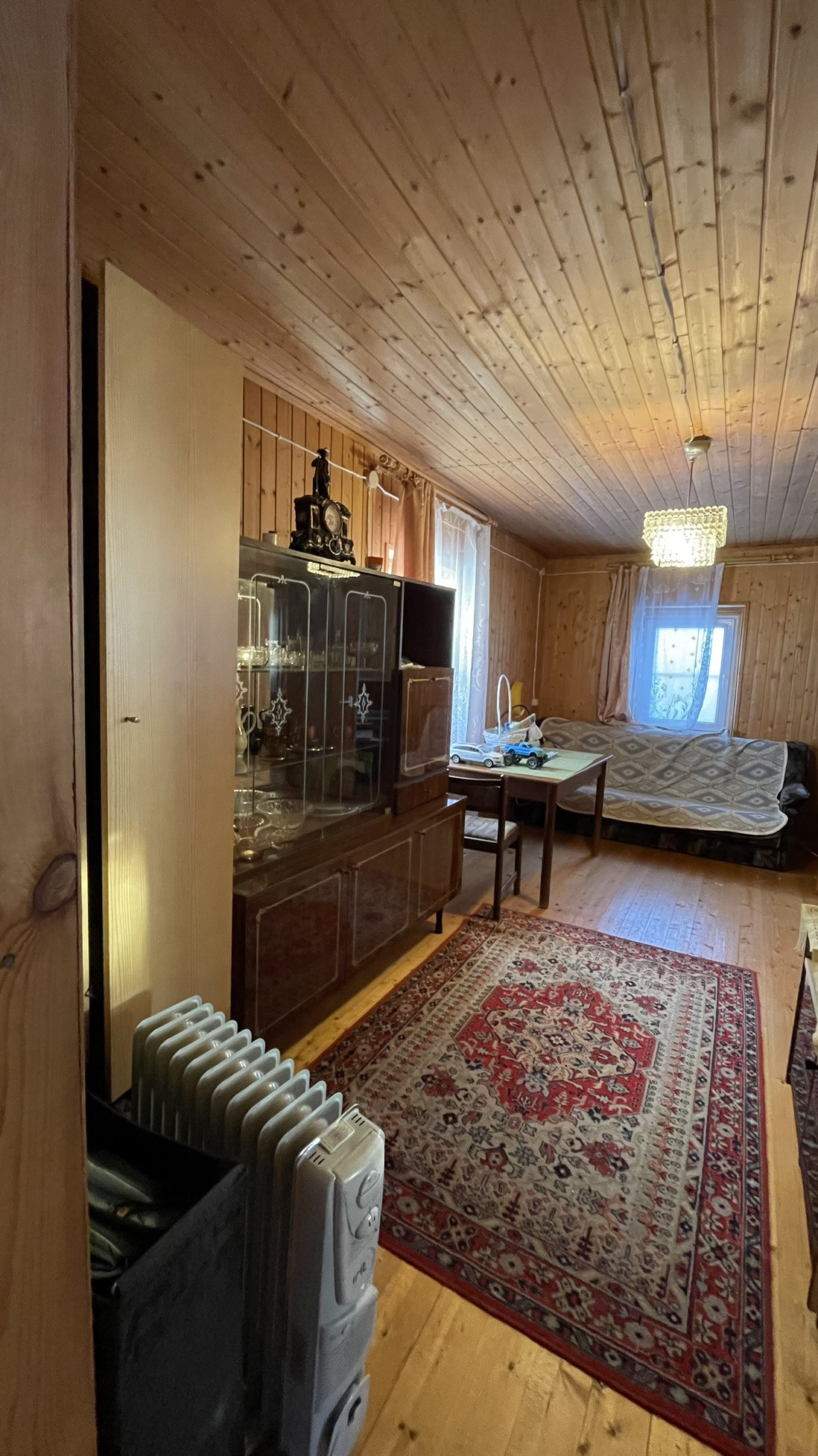 Дом предназначен для круглогодичного проживания. На первом этаже располагаются гостиная, кухня, две спальни. На 2-м этаже располагаются две комнаты. Особый уют и тепло дому придаёт русская кирпичная печь. Кровля из асбестоцементных листов по обрешетке ( шиферная). Стены из рубленных бревен диаметром 220 мм. Фундамент лентончный. Есть wi-fi роутер.