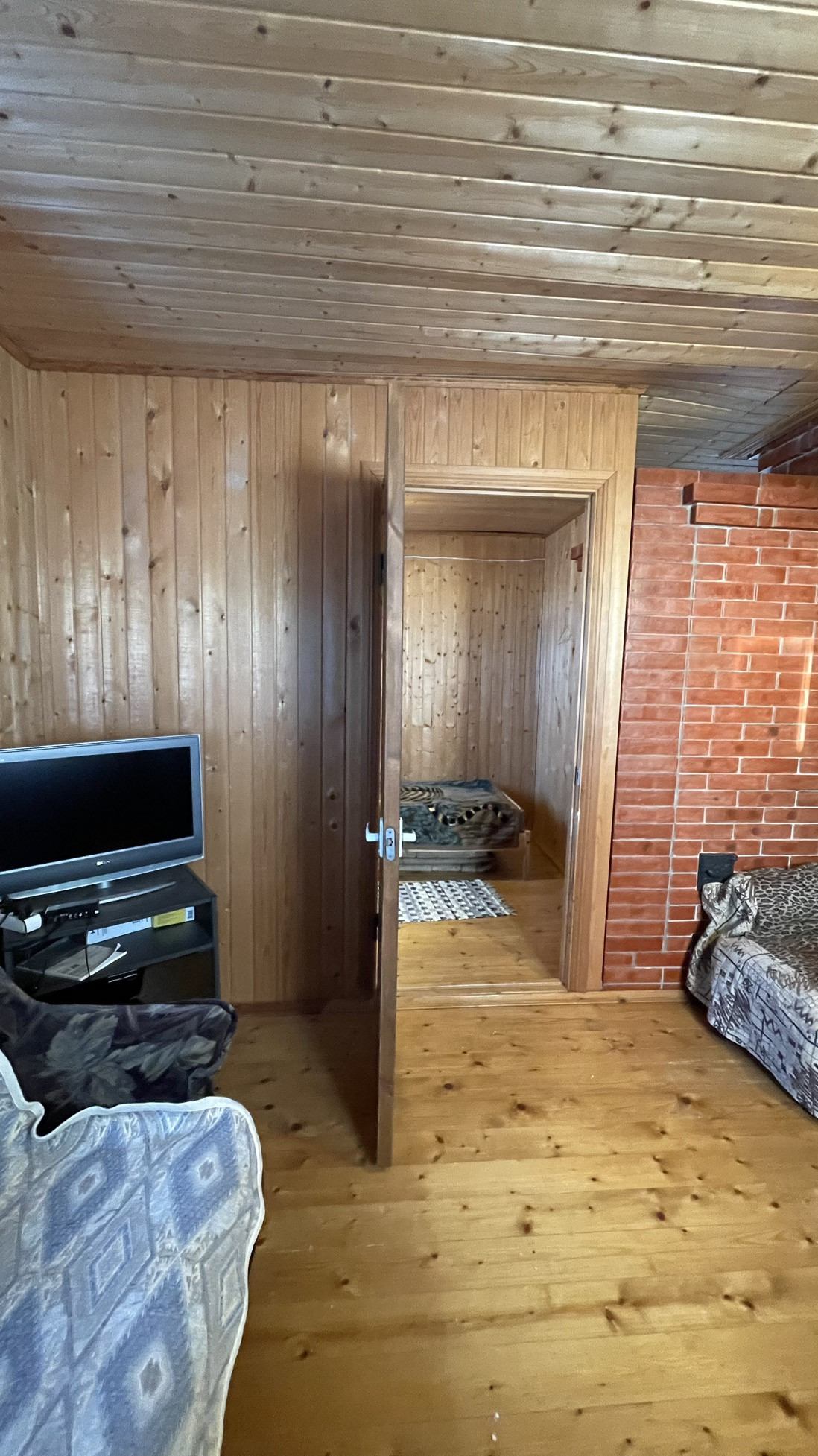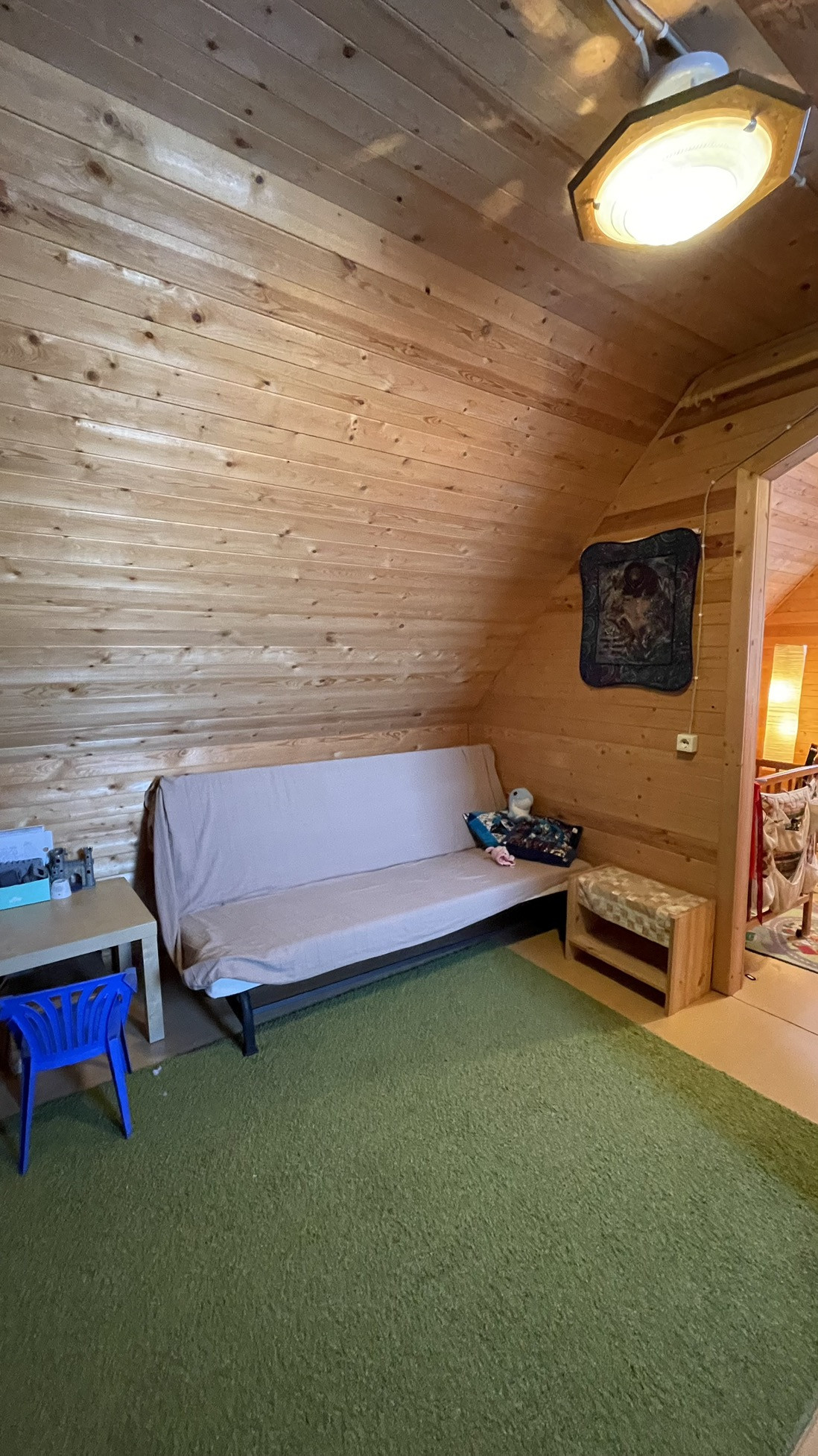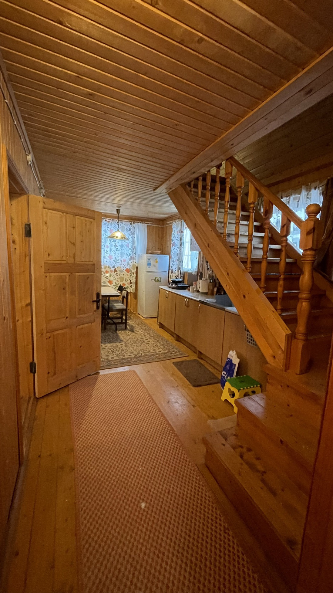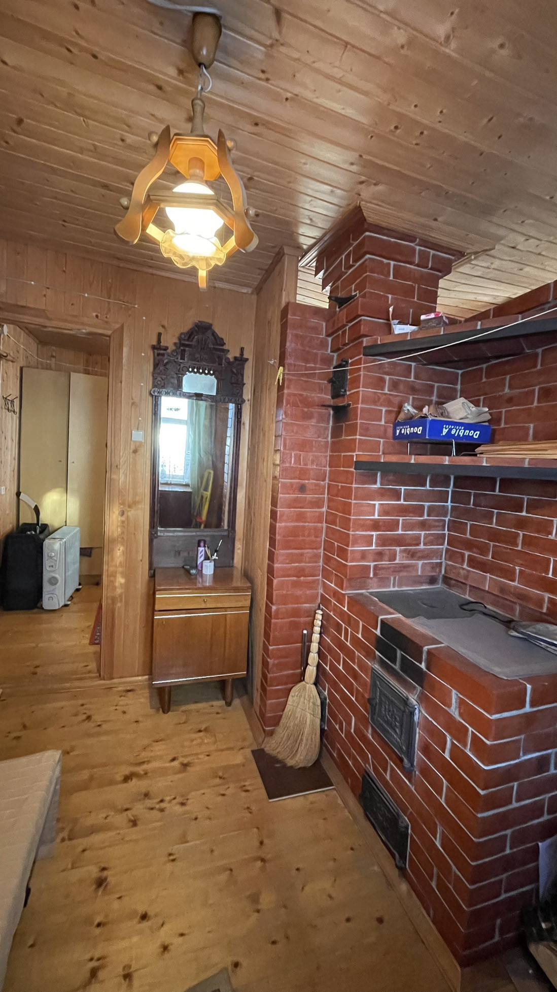 Дом предназначен для круглогодичного проживания. На первом этаже располагаются гостиная, кухня, две спальни. На 2-м этаже располагаются две комнаты. Особый уют и тепло дому придаёт русская кирпичная печь. Кровля из асбестоцементных листов по обрешетке ( шиферная). Стены из рубленных бревен диаметром 220 мм. Фундамент лентончный. Есть wi-fi роутер.
