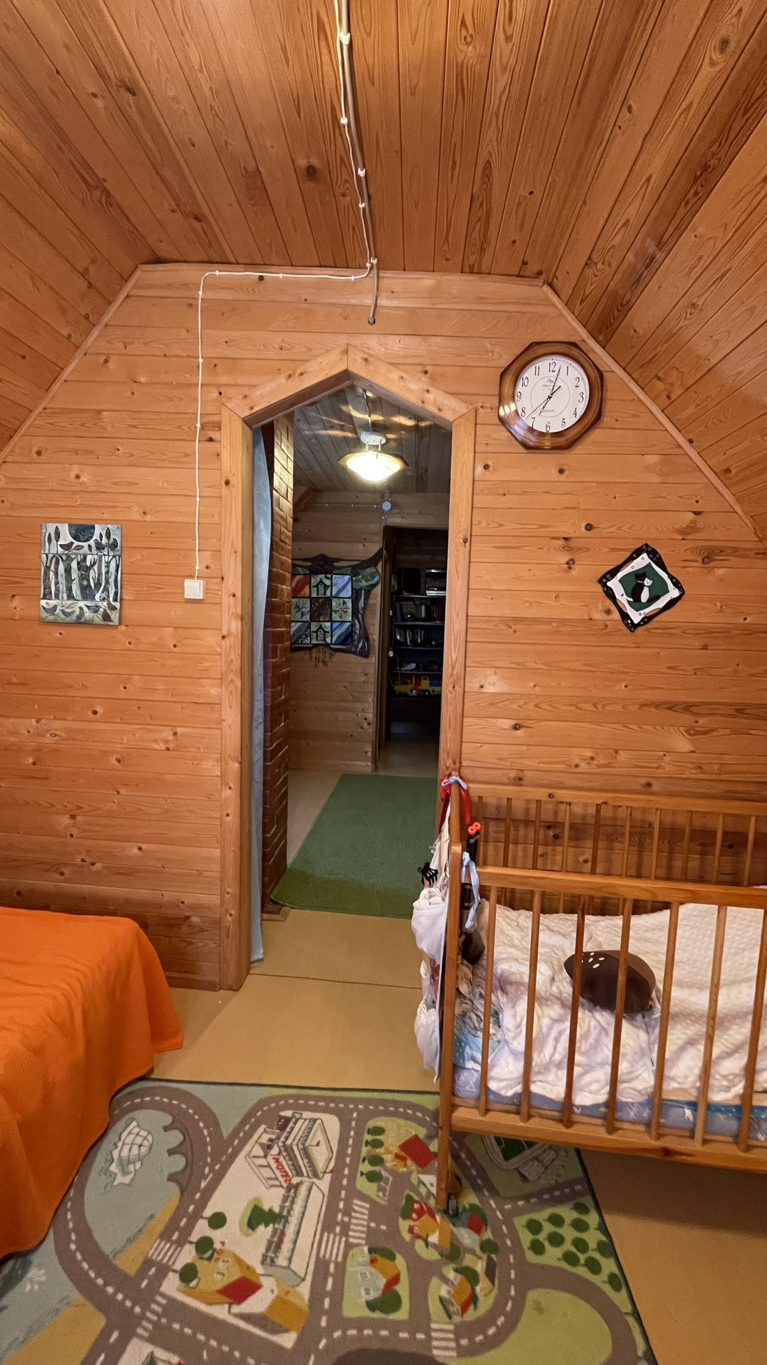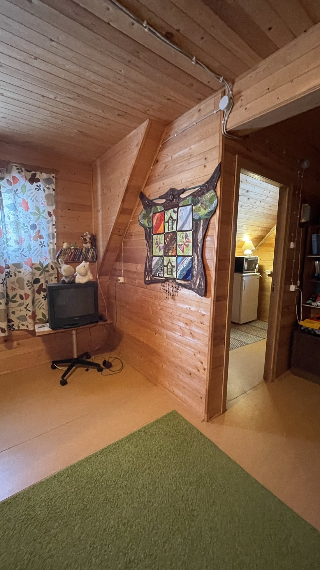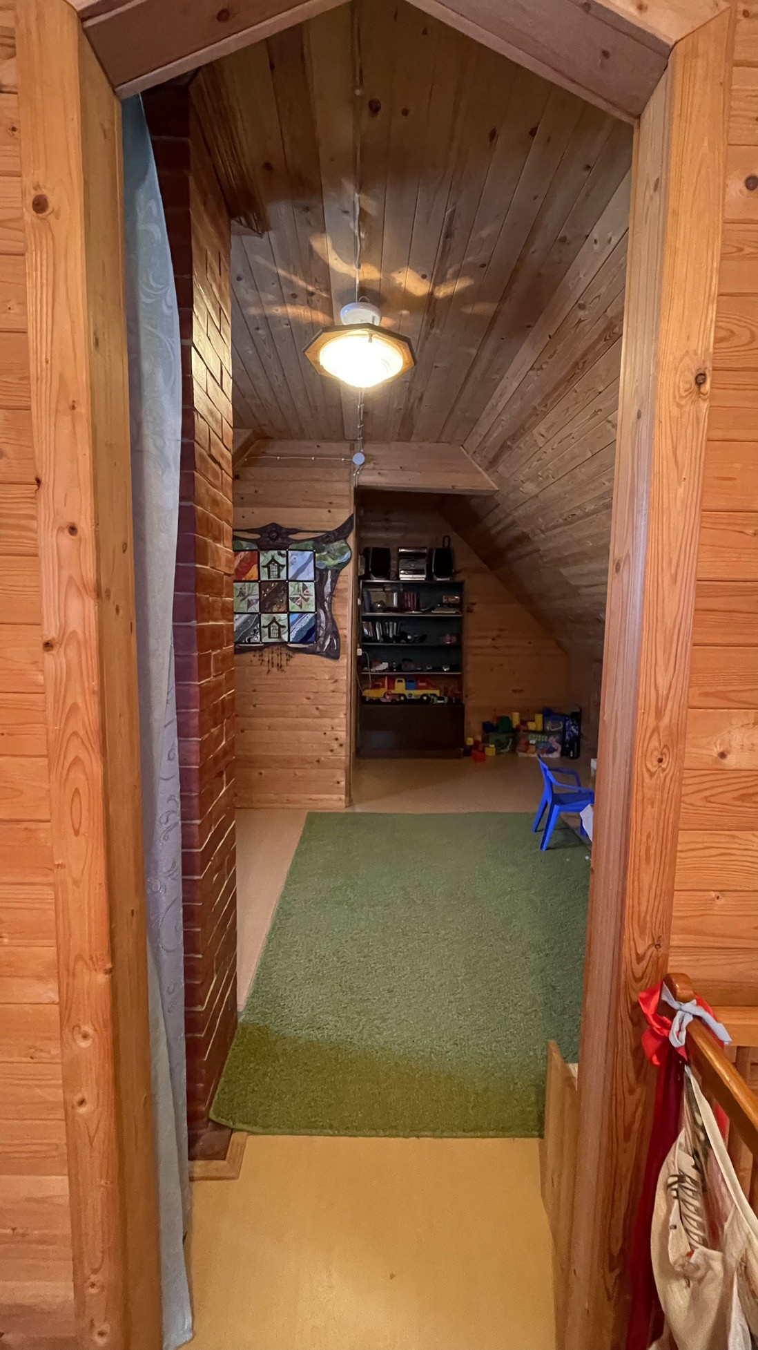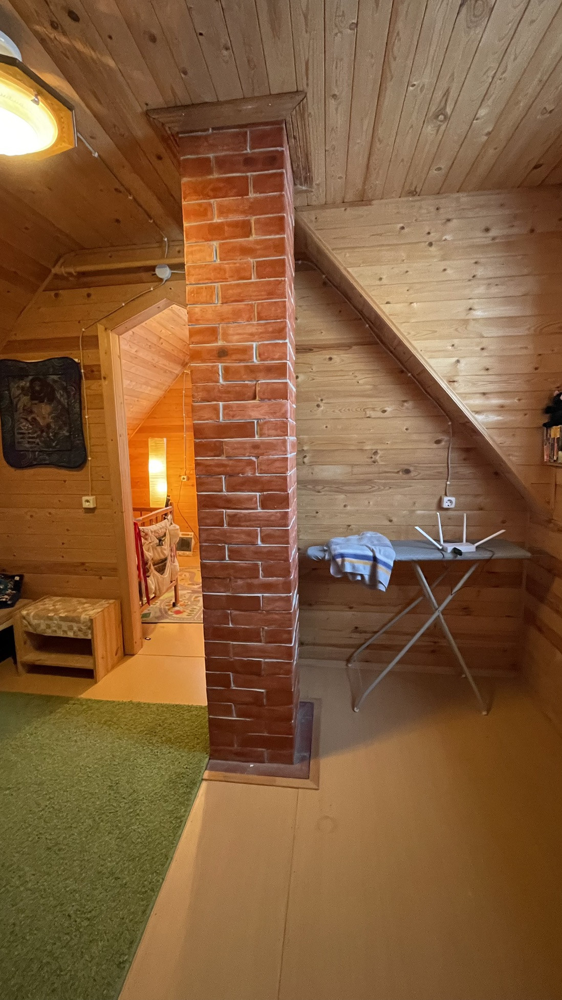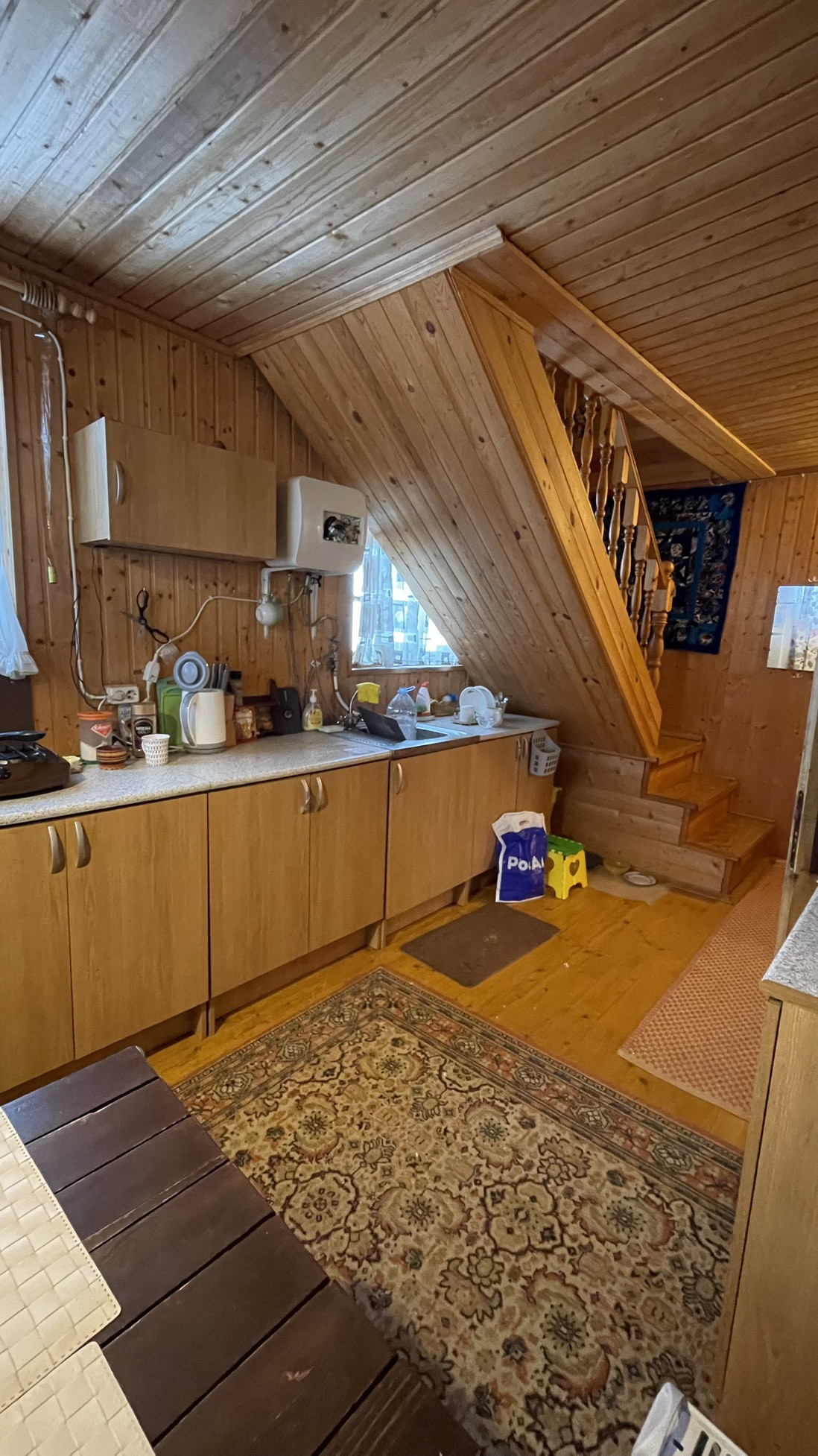Дом предназначен для круглогодичного проживания. На первом этаже располагаются гостиная, кухня, две спальни. На 2-м этаже располагаются две комнаты. Особый уют и тепло дому придаёт русская кирпичная печь. Кровля из асбестоцементных листов по обрешетке ( шиферная). Стены из рубленных бревен диаметром 220 мм. Фундамент лентончный. Есть wi-fi роутер.