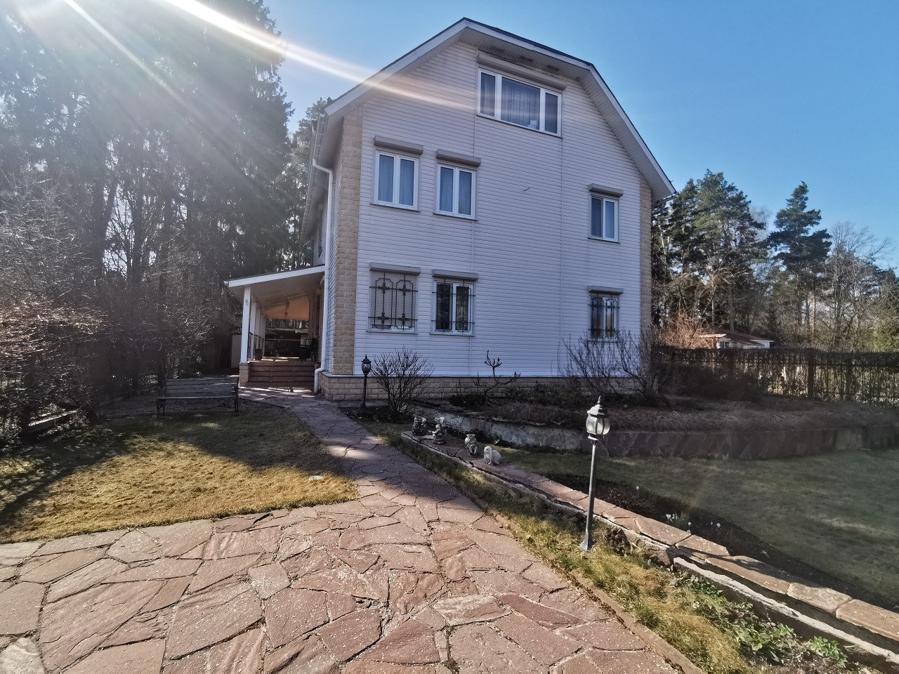 3-х ЭТАЖНЫЙ ДОМ 326,1 кв.м с террасой 2002 года постройки состоит из двух жилых этажей и мансарды. Дом под охраной, на всех окнах автоматические ставни, имеется разводка сигнализации по всему дому. Кондиционеры Daikin в каждой комнате, кроме кабинета. В санузлах теплые полы. Отопление своя котельная. Водоснабжение скважина глубиной 58 м с 5-ю степенями очистки. Канализация септик. В котельной: Котел для горячей воды электрический. Дизель генератор Хонда 3 фазы с автоматикой. Котел - Дедитрих.