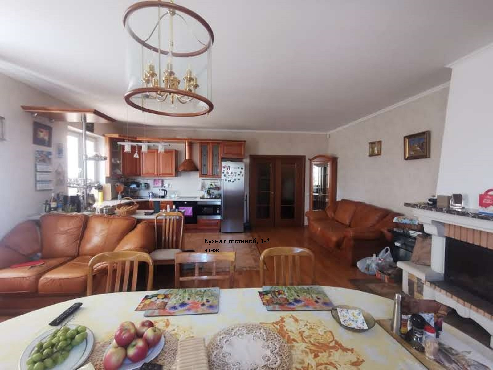 Кухня-столовая с натуральным камином, встроенная кухня со всей бытовой техникой плита с духовкой Zigmund Schtein, вытяжка, посудомоечная машина Bosch. Спальня, санузел, кладовка, котельная, веранда.