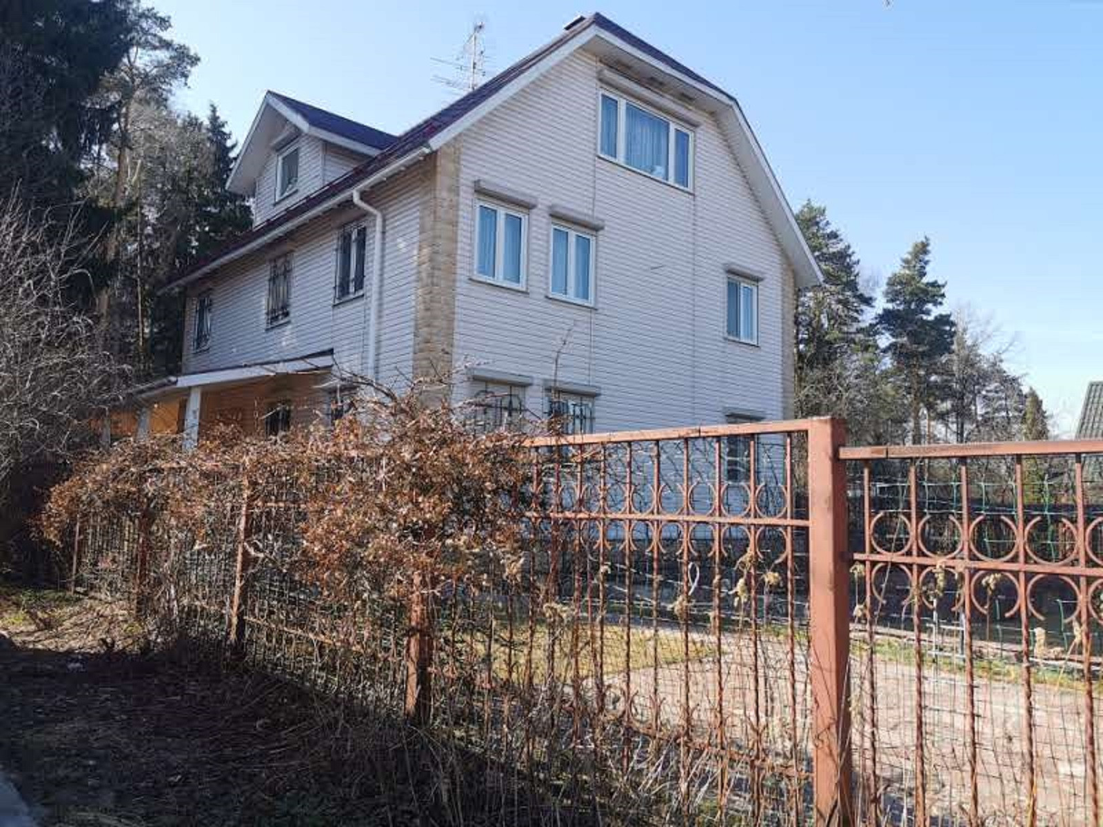 УЧАСТОК 8,5 соток(по документам), примыкает к хвойному лесу. На участке 3 голубых ели, сирень,кустарники, газон, клумбы, забор оплетает виноградник, имеется дополнительное ограждение для животных. Также на участке автополив с автоматической подкачкой воды.