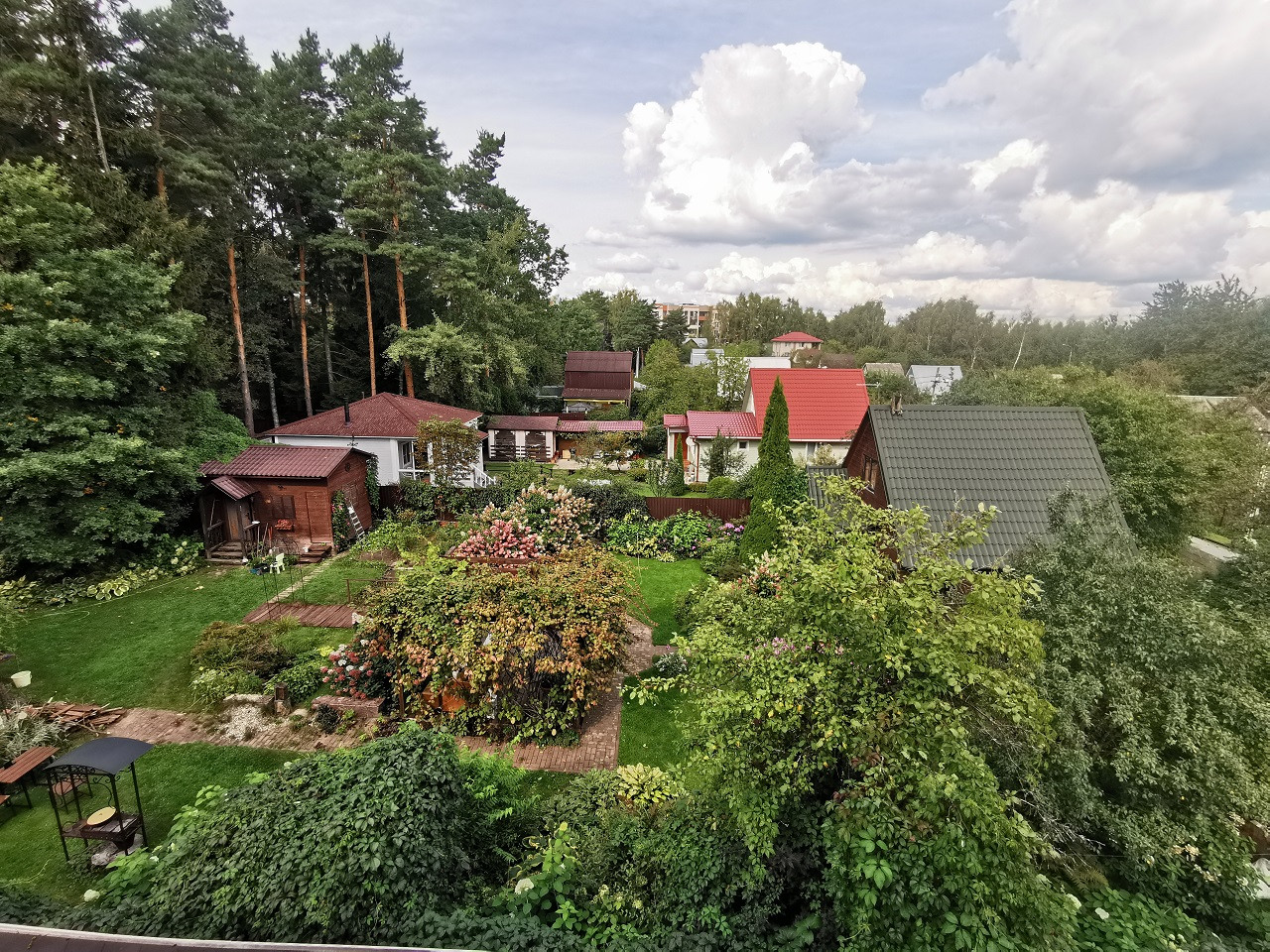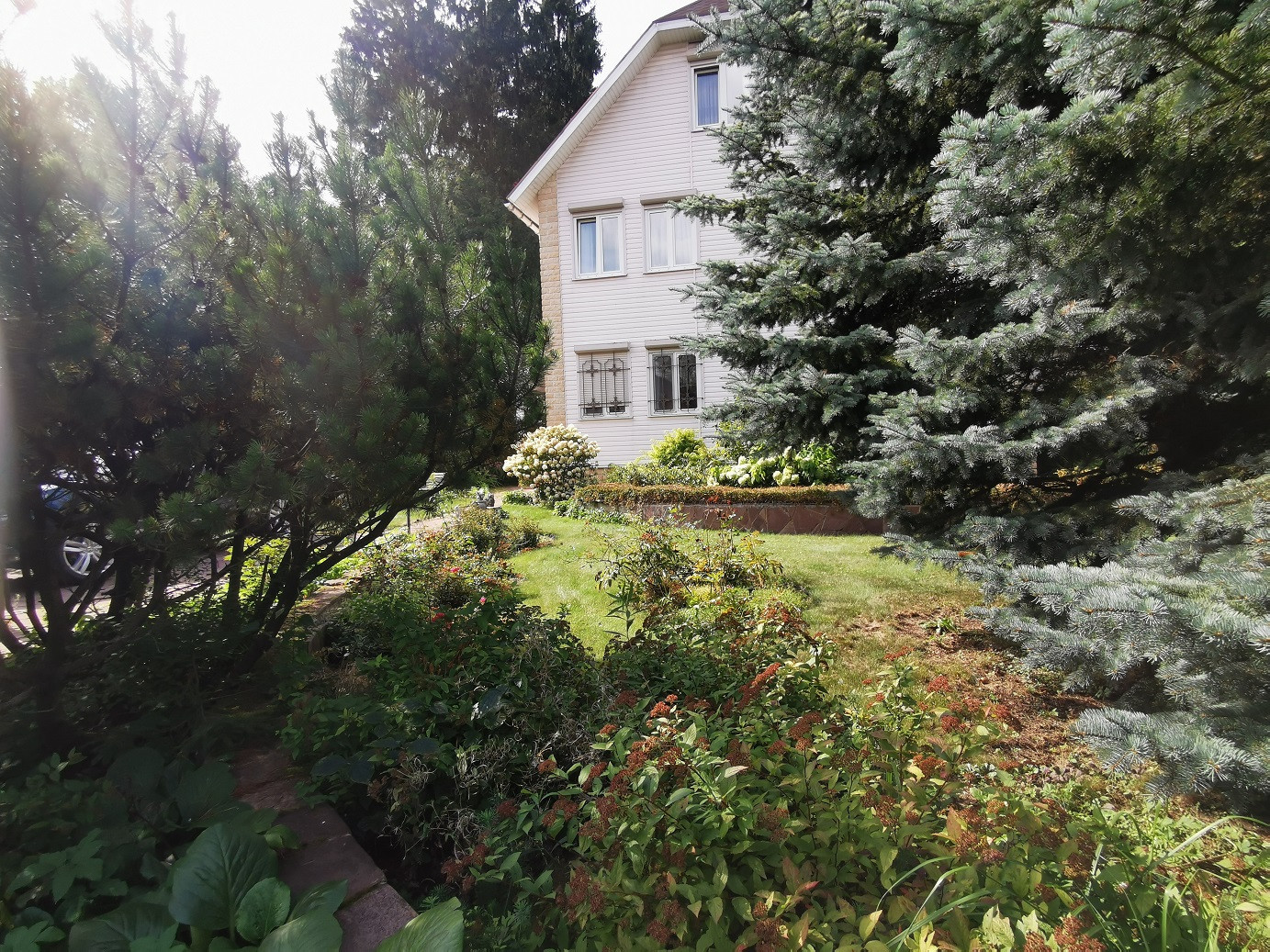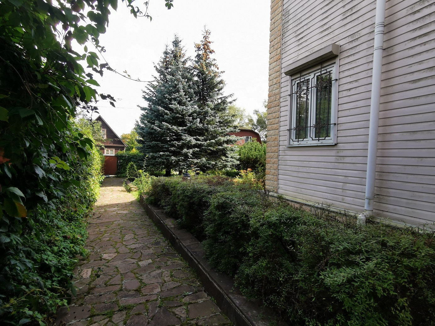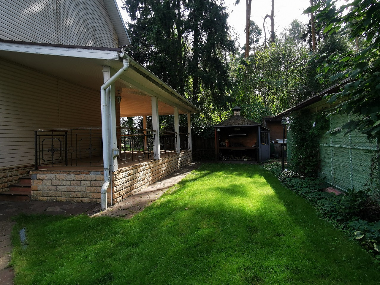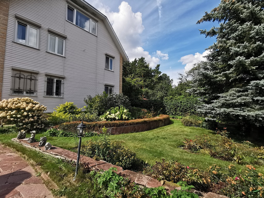 УЧАСТОК 8,5 соток(по документам), примыкает к хвойному лесу. На участке 3 голубых ели, сирень,кустарники, газон, клумбы, забор оплетает виноградник, имеется дополнительное ограждение для животных. Также на участке автополив с автоматической подкачкой воды.
