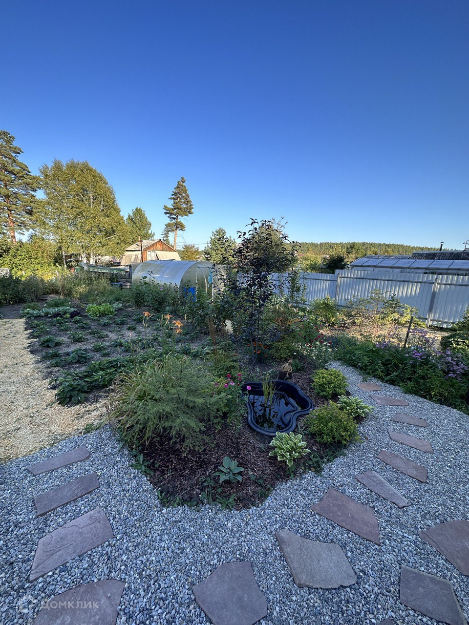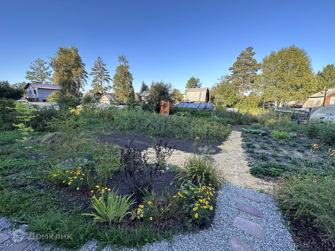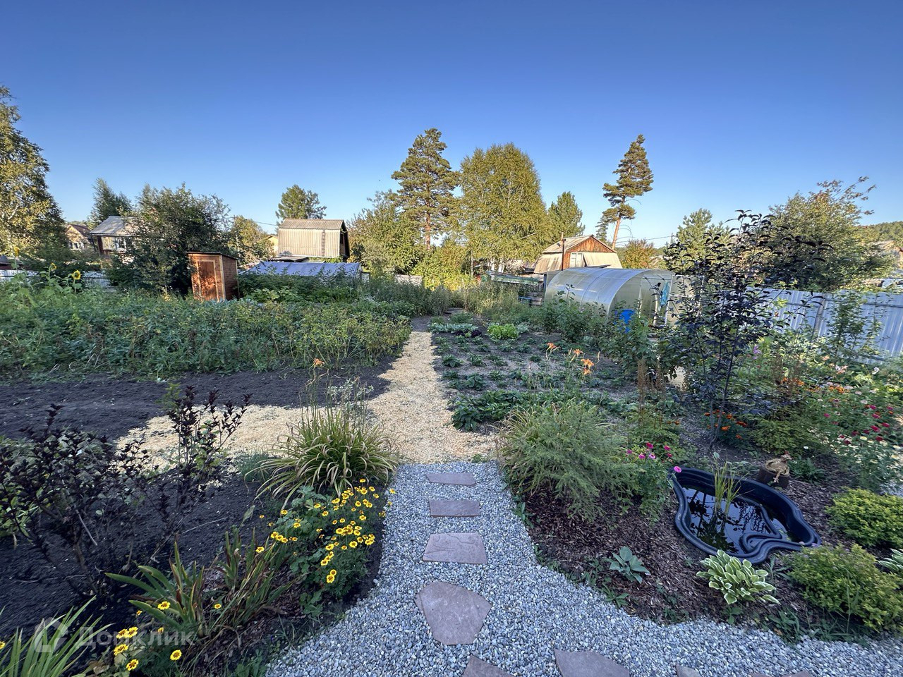 Общая площадь участка составляет 6 соток. Участок ровной формы, огорожен забором из металлопрофиля, полностью благоустроен и ухожен - теплица из поликарбоната, насаждения (ирга, малина, клубника, жимолость, черноплодная рябина, калина, молодые яблони, декор. кустарники, цветы). В садоводстве летний водопровод с мая по октябрь. Есть место для парковки 2-х автомобилей.