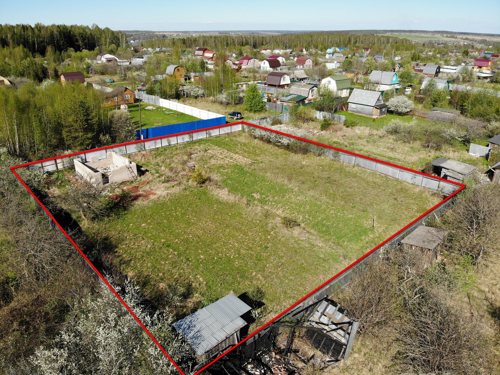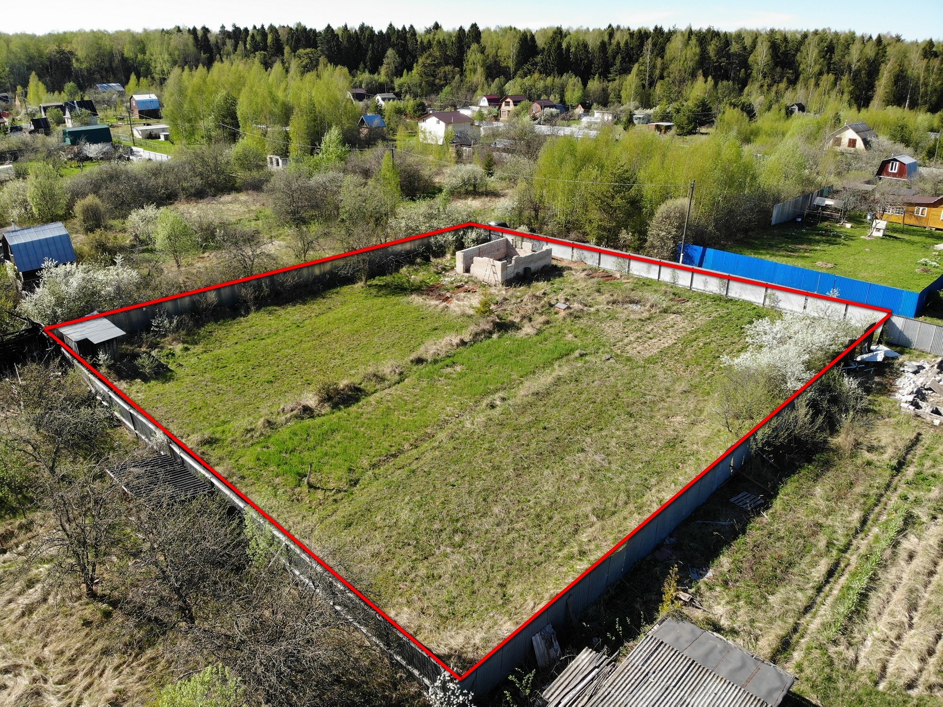 Участок огорожен забором из профлиста