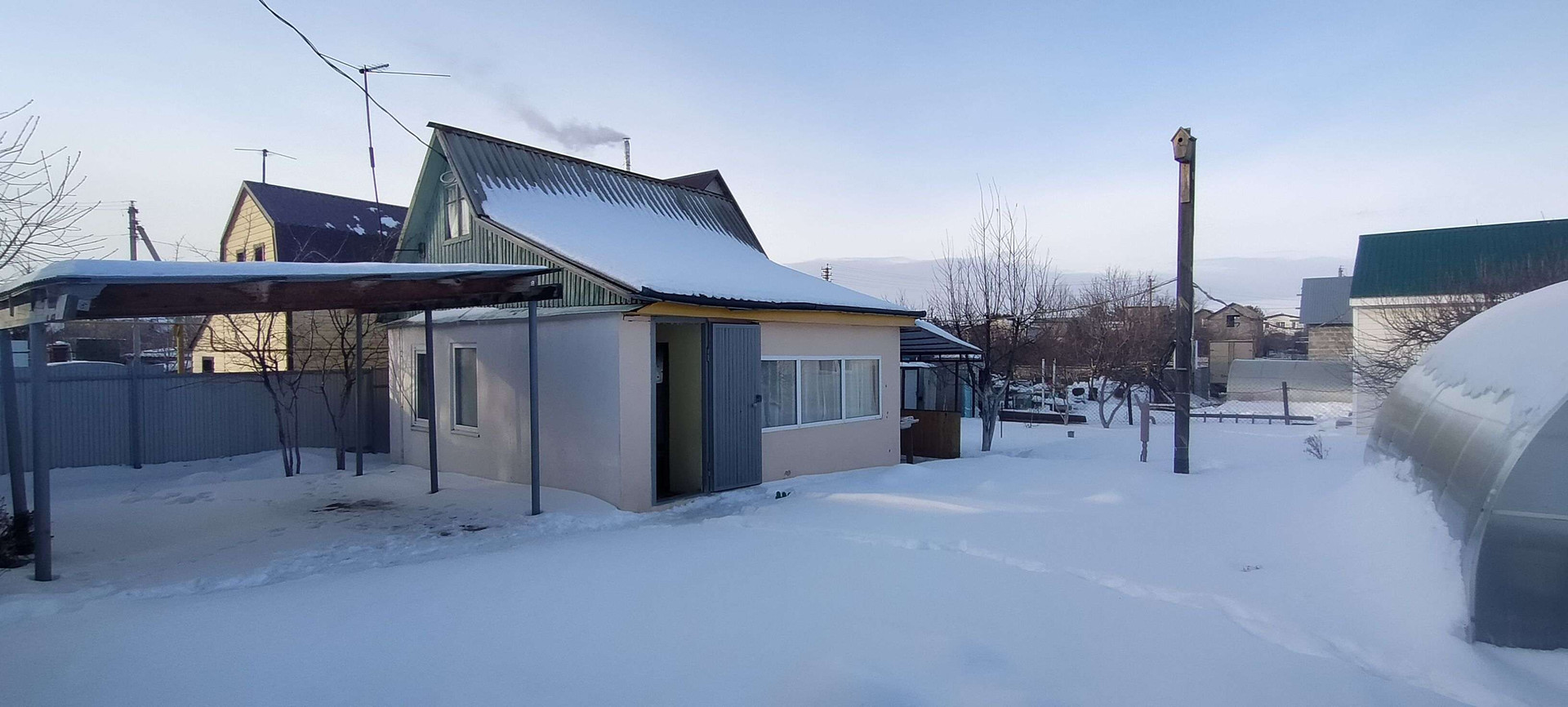 Есть также на участке и летний душ, мастерская. Крытое парковочное место с бетонным основанием.