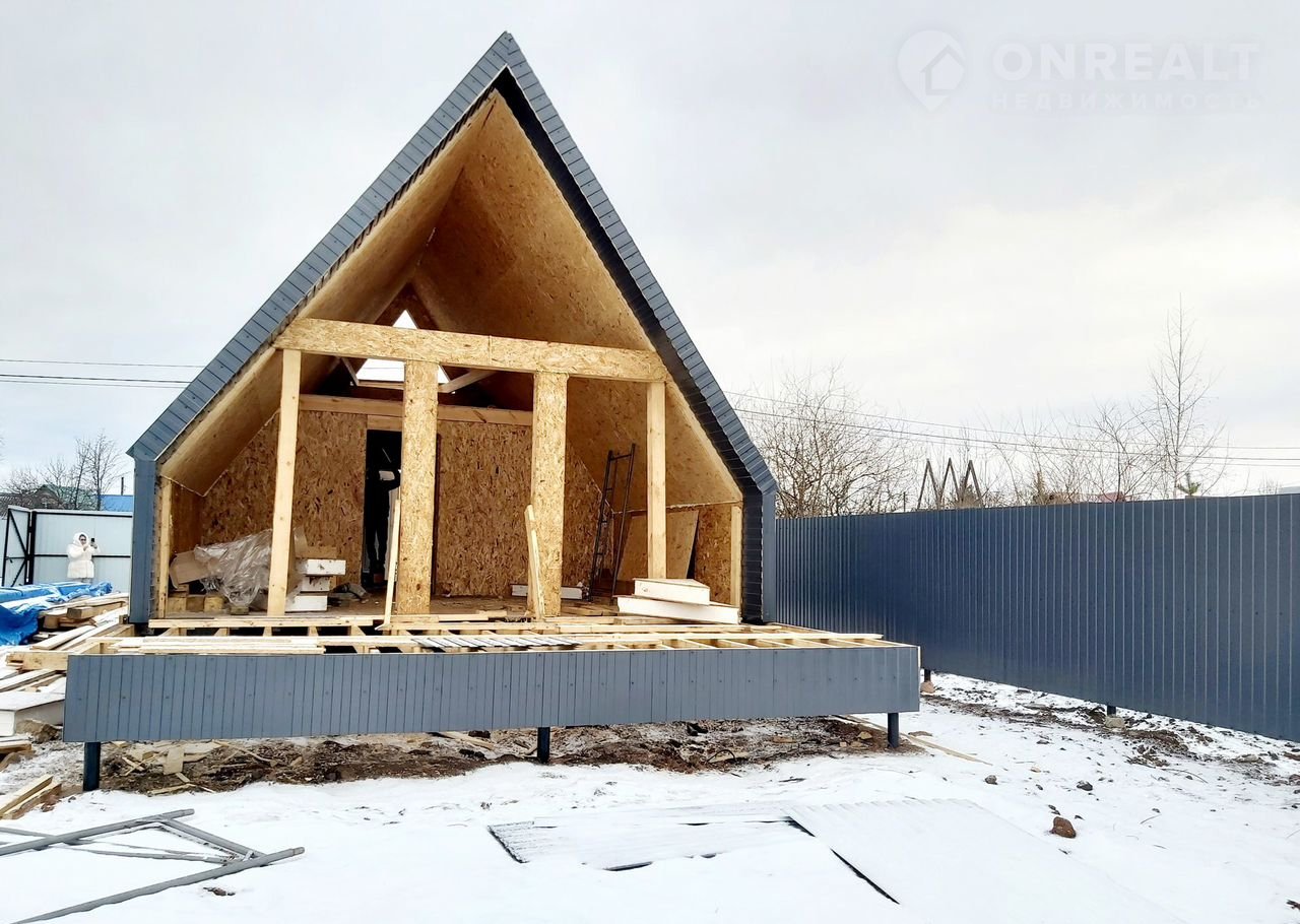Абсолютно новый дом из сип-панелей на свайно-винтовом фундаменте, обшит профлистом и с новым забором по периметру земельного участка.