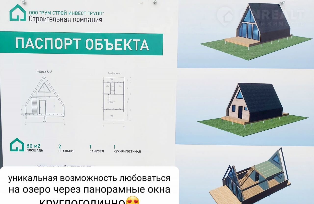 Дом прекрасно вмещает в себя компанию из 6 человек. Чистовая отделка от застройщика. На мансардном этаже двуспальная кровать с панорамным видом на озеро , кухня-гостиная с диваном, отдельная комната с кроватью и санузел, созданы все комфортные условия для вашего отдыха