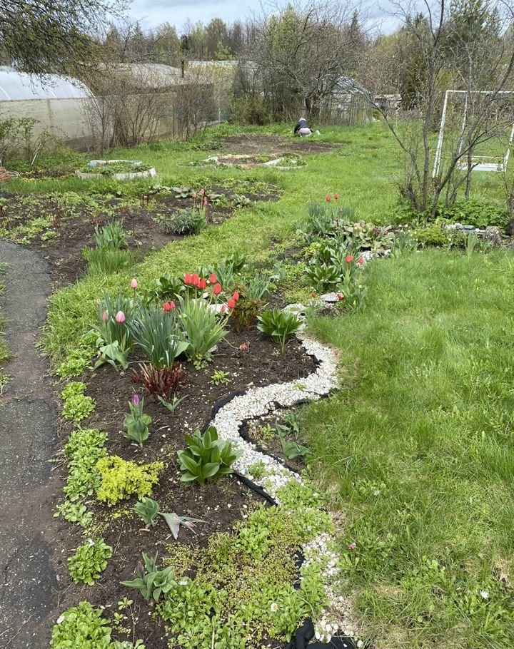 По периметру : вишни , яблони , слива , смородина , малина , терн , ирга ….