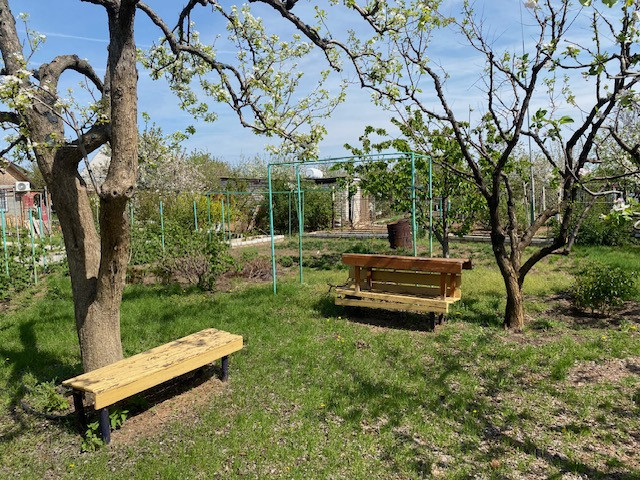 Участок ровный прямоугольный. На участке хозблок из керамзитобетона: туалет, кладовая. Хороший ухоженный сад из плодовых деревьев.