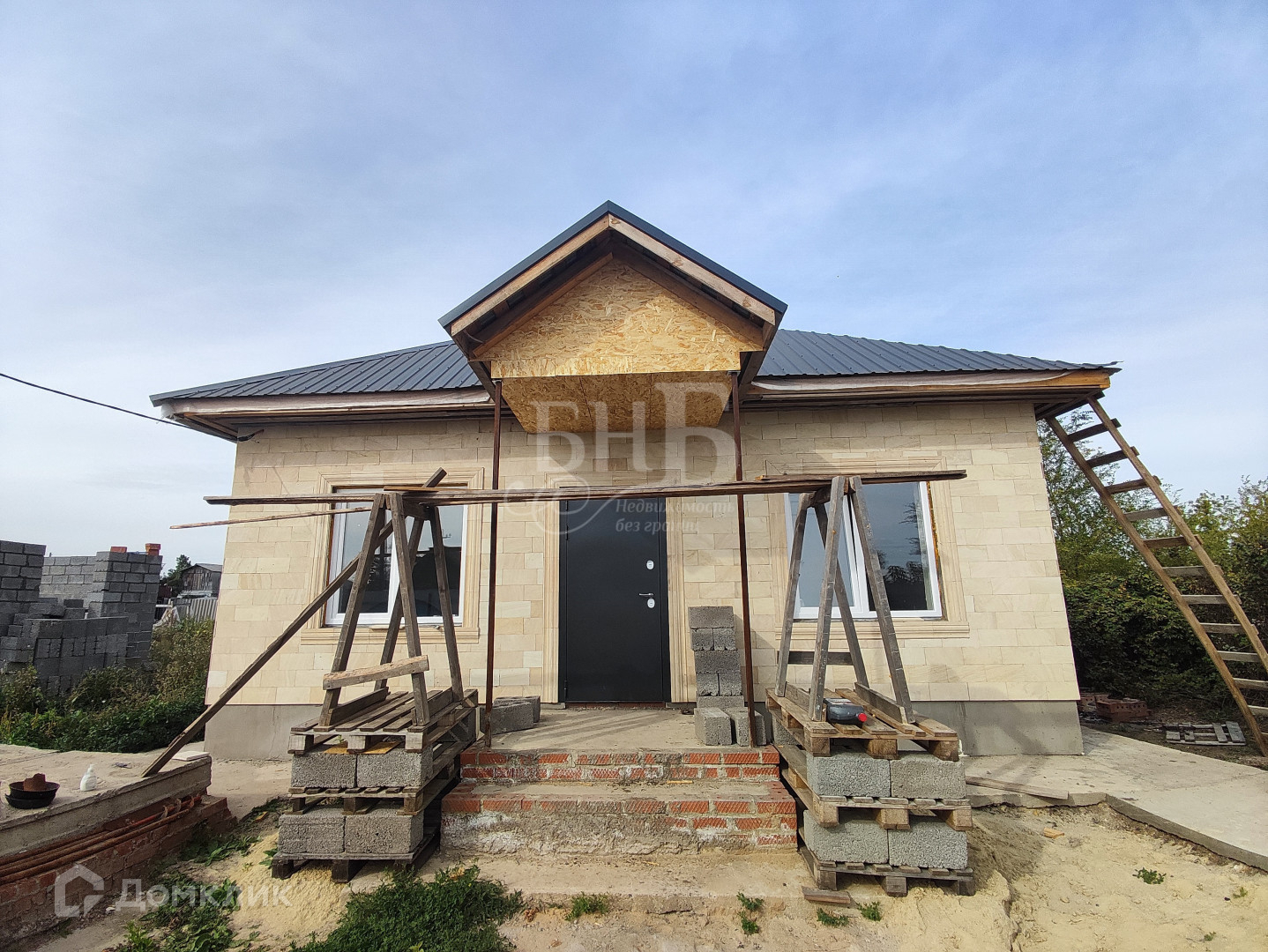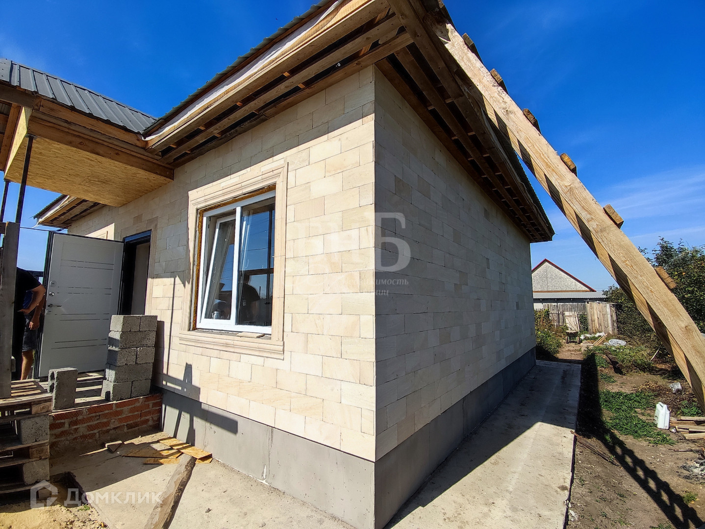 Фасад дома выполнен из Дагестанского камня. В строительстве используем свайно-ленточный фундамент, керамзитоблоки с утеплителем для стен и профессиональный металлический кровельный материал. В доме предчистовая отделка (стены оштукатуренны,сделана сухая стяжка пола), качественные окна с ламинацией.