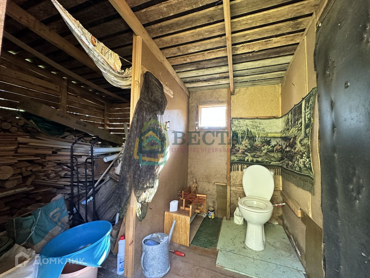 Санузел в хозблоке, стоит унитаз, подключен к септику