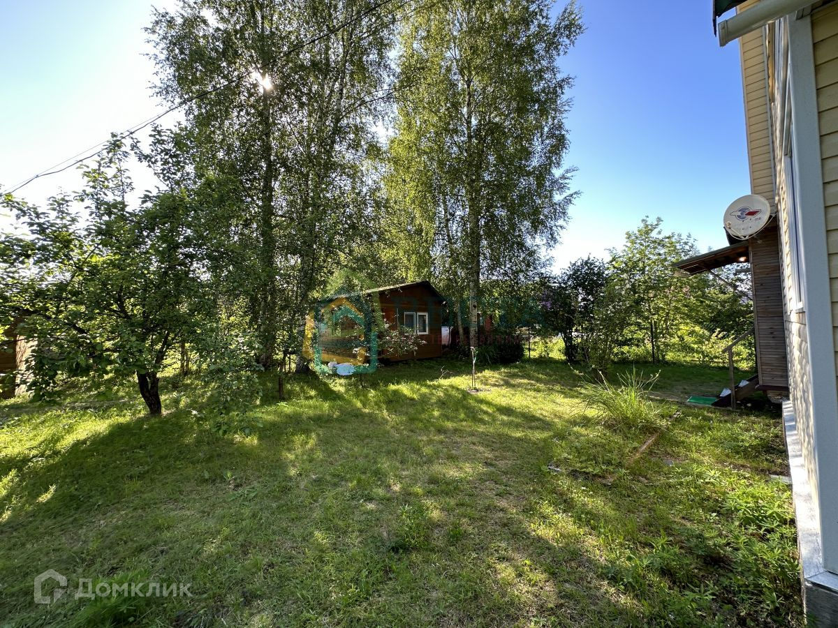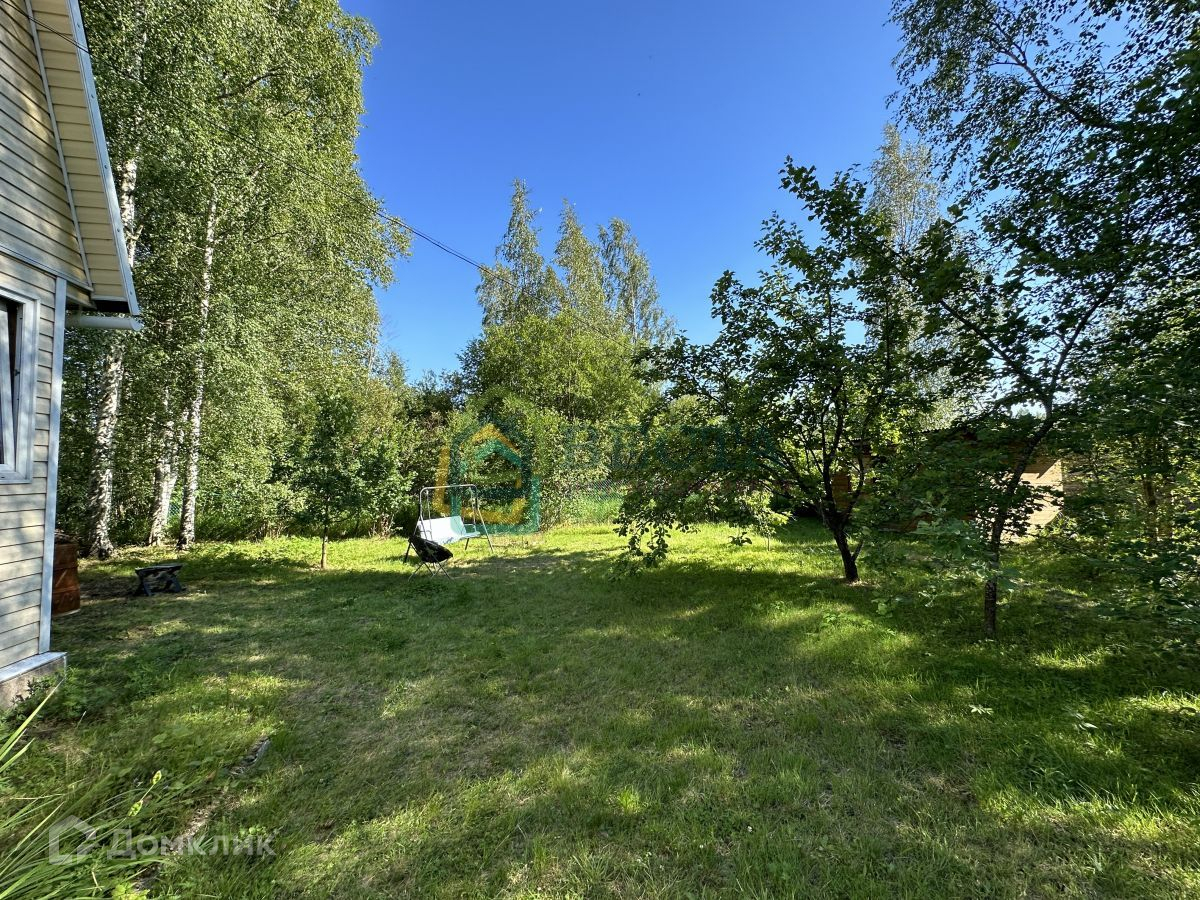 Уютный аккуратный дом на ухоженном участке с лесными и садовыми деревьями.