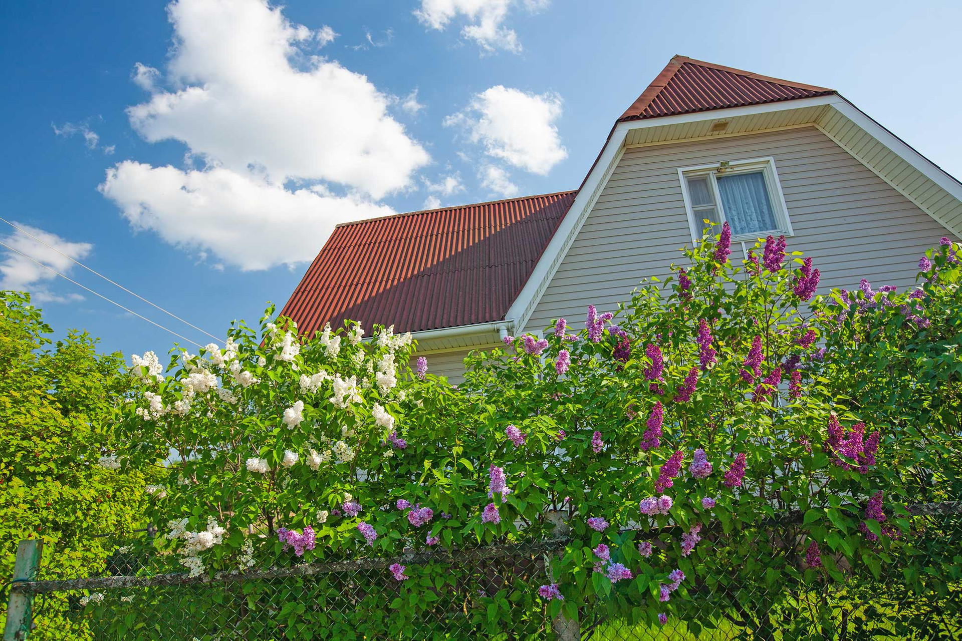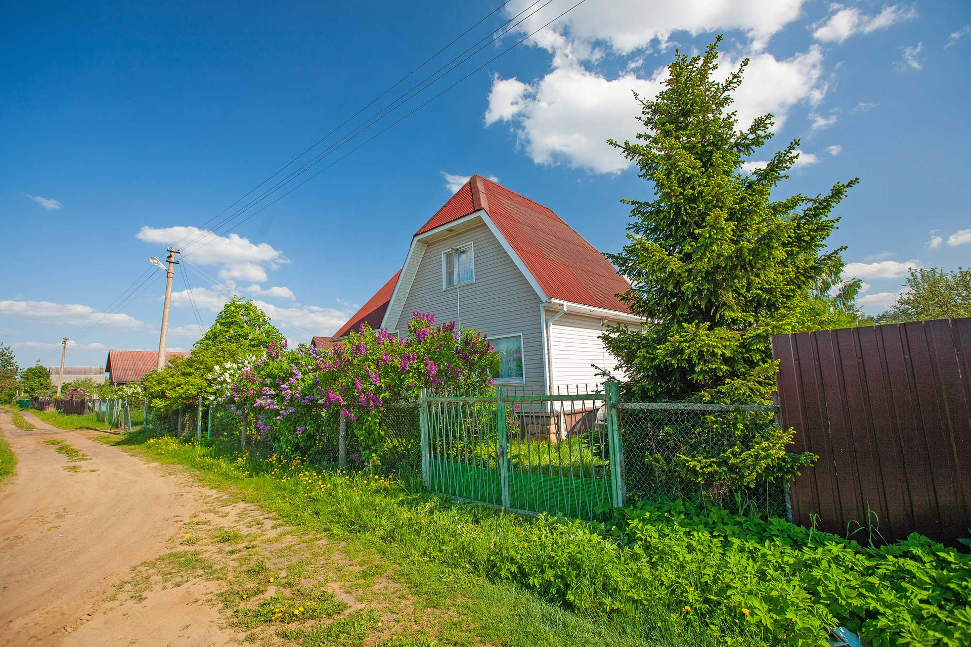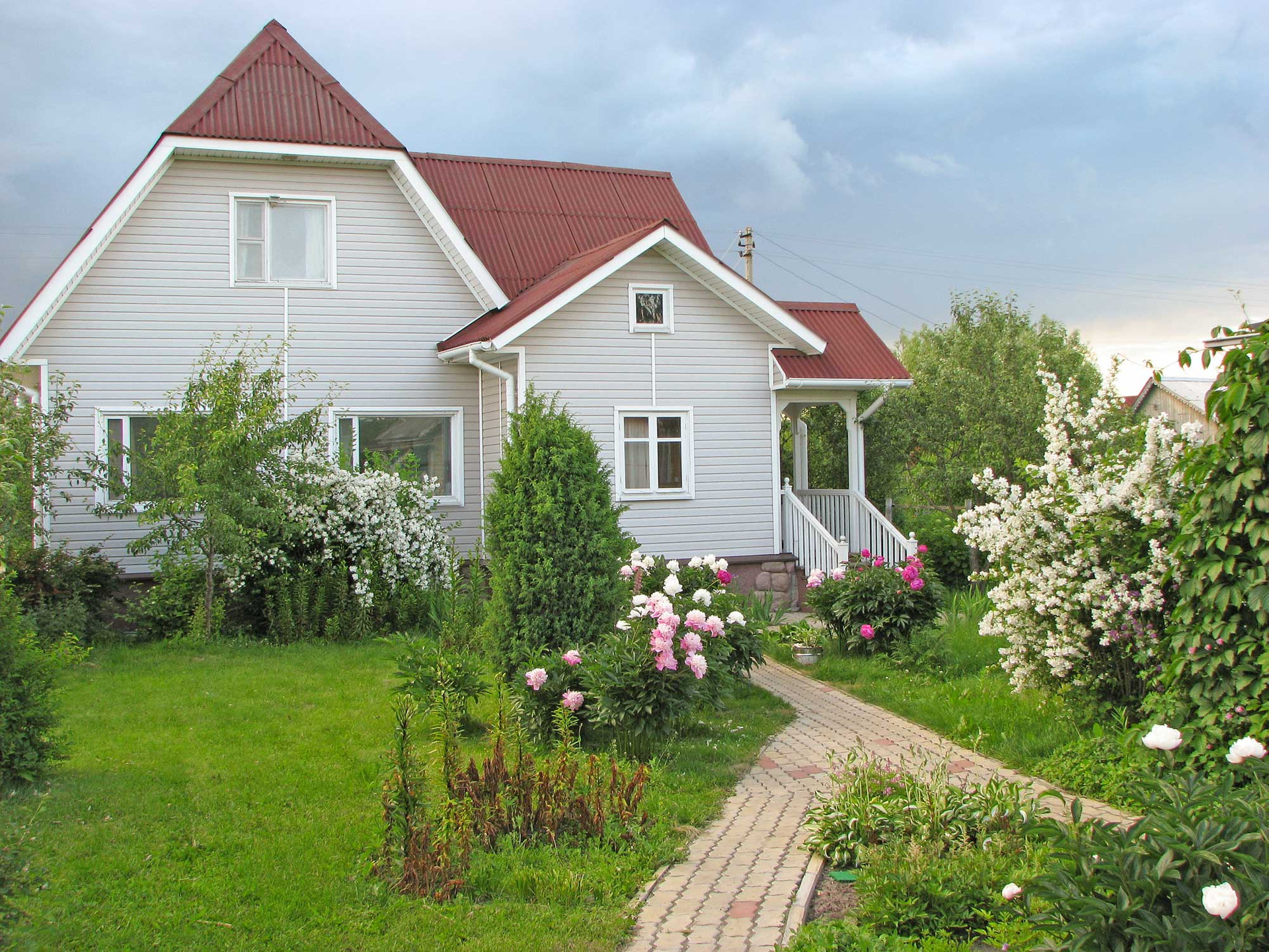 На плодородной земле участка есть яблони, груши, слива, смородина, крыжовник, облепиха, пионы, сирень, жасмин.