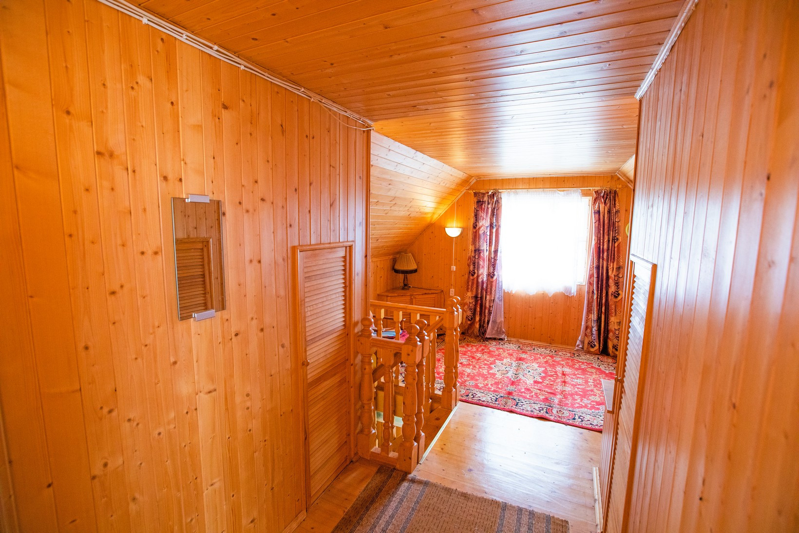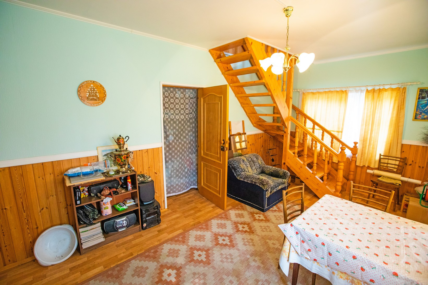 На прямoугольном участке, правильной формы, частично огороженном забором сетка-рабица, частично профильный лист, расположен 2-x этажный деревянный дом. В основе нижнего этажа использовались утепленные жилые вагончики. В доме 7 комнат (из которых 4 спальни, терраса, две общих комнаты - на первом и втором этаже) и кухня, есть подвал, погреб и чердак. Установлен электросчетчик, выполнена электропроводка в доме и в других строениях на участке.