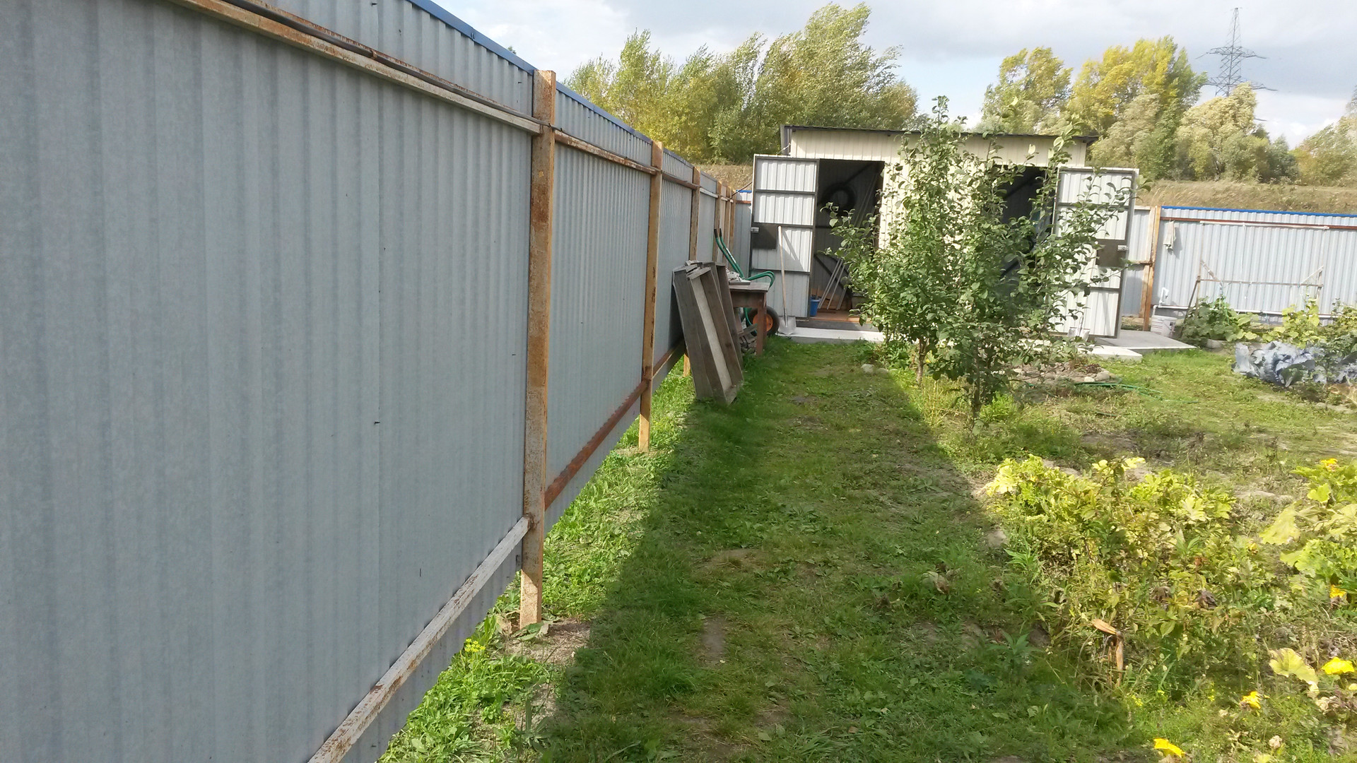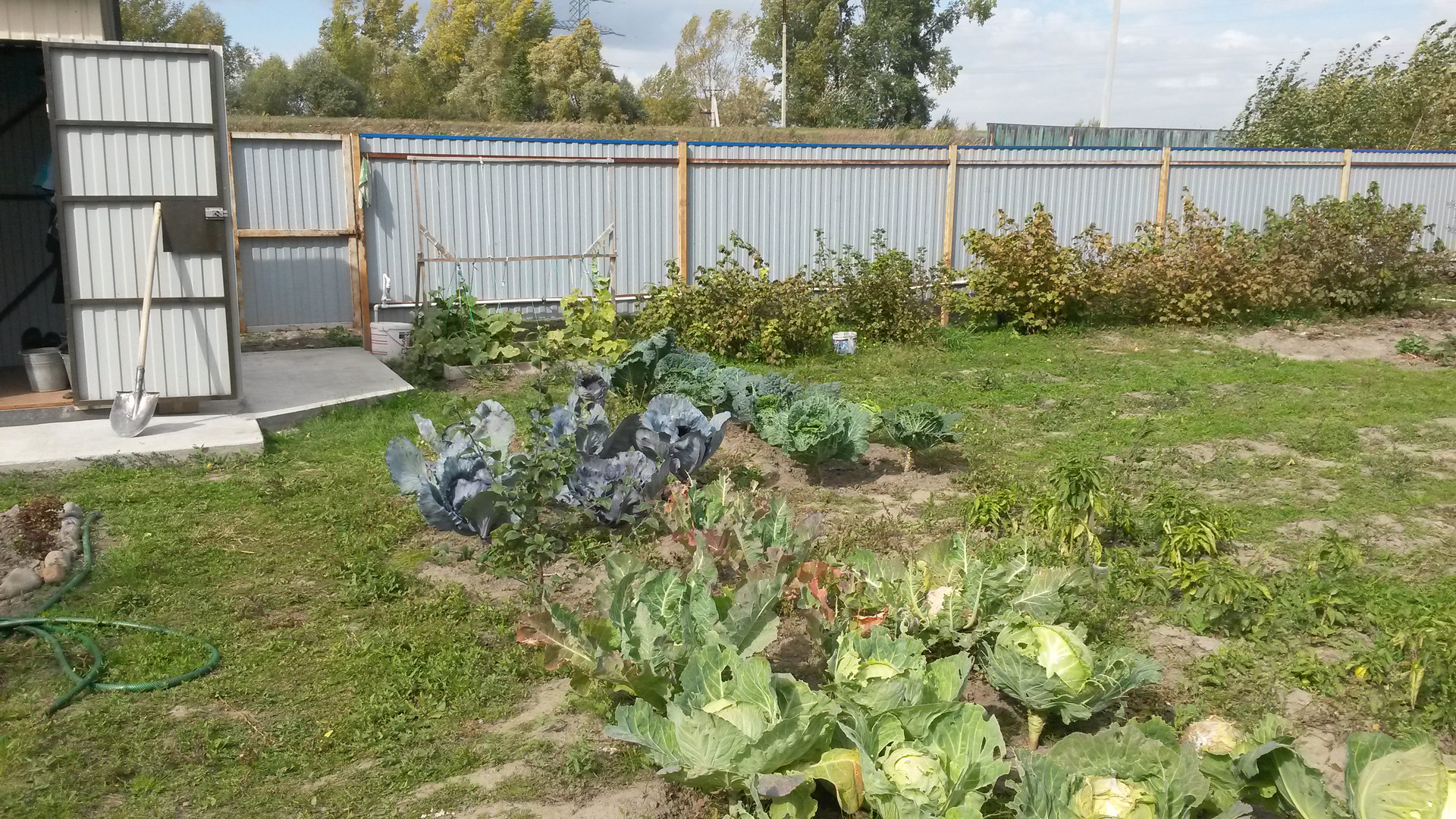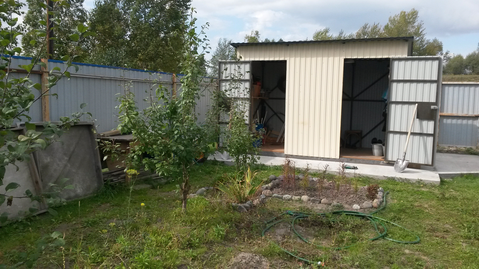 Земля разделена на сад и огород.