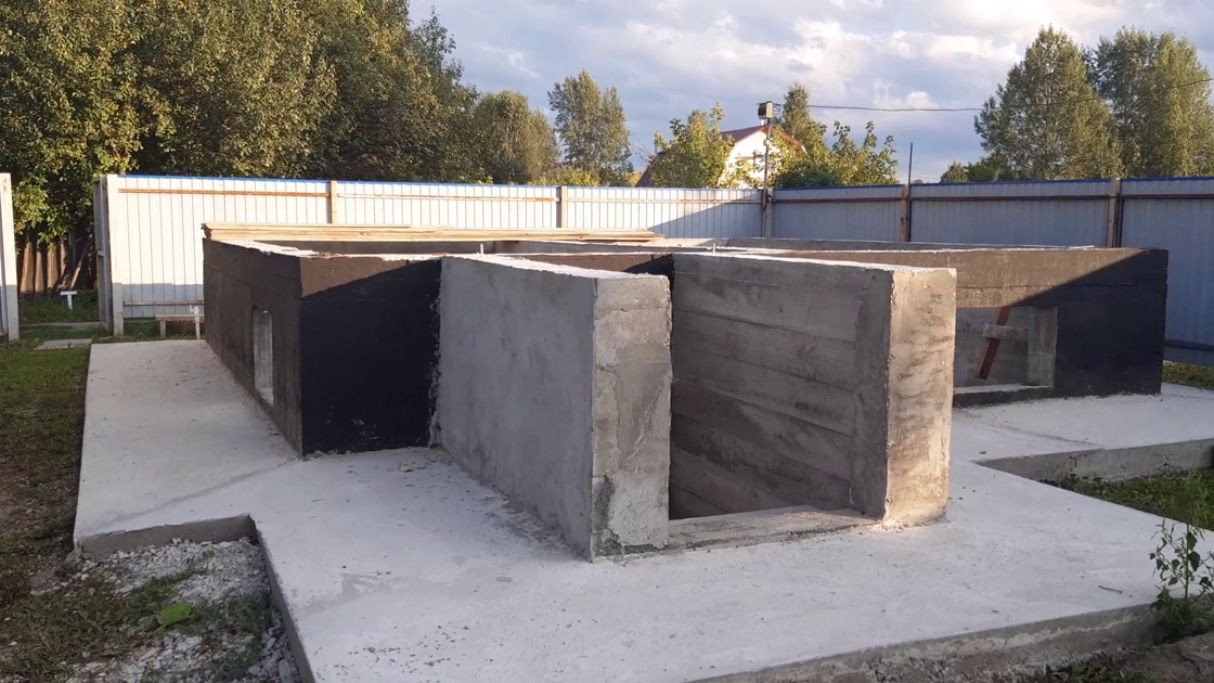 Залит фундамент под дом 6*6 м.- готовый цокольный этаж (полуподвал)из армированного бетона. По периметру полуподвала проведена гидроизоляция, утепление пеноплексом (технониколь) и залита отмостка. Внутри цокольного этажа залит черновой бетонный пол с утеплением пеноплексом, пробита скважина.