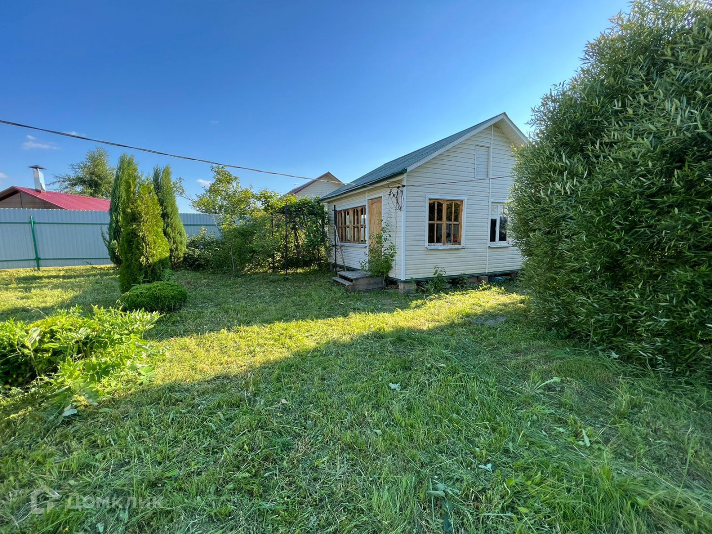 Участок 12 соток. Огорожен забором из профнастила. На участке новая беседка, мангальная зона, , летняя кухня , хозблок  с душевой кабиной и водонагревателем.  Участок ухожен. Посажены декоративные и плодовые культуры: яблони, слива, виноград, смородина, крыжовник.