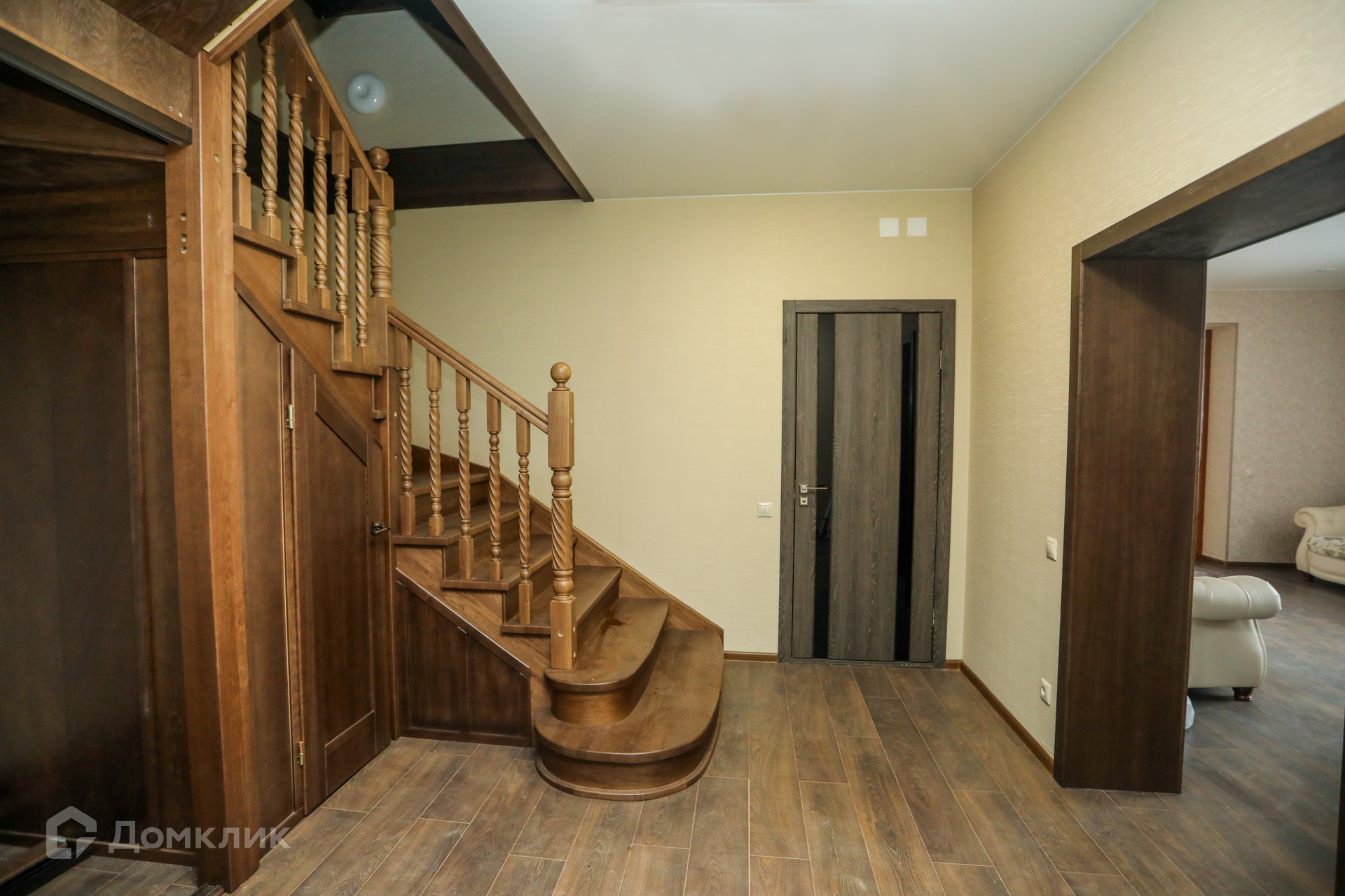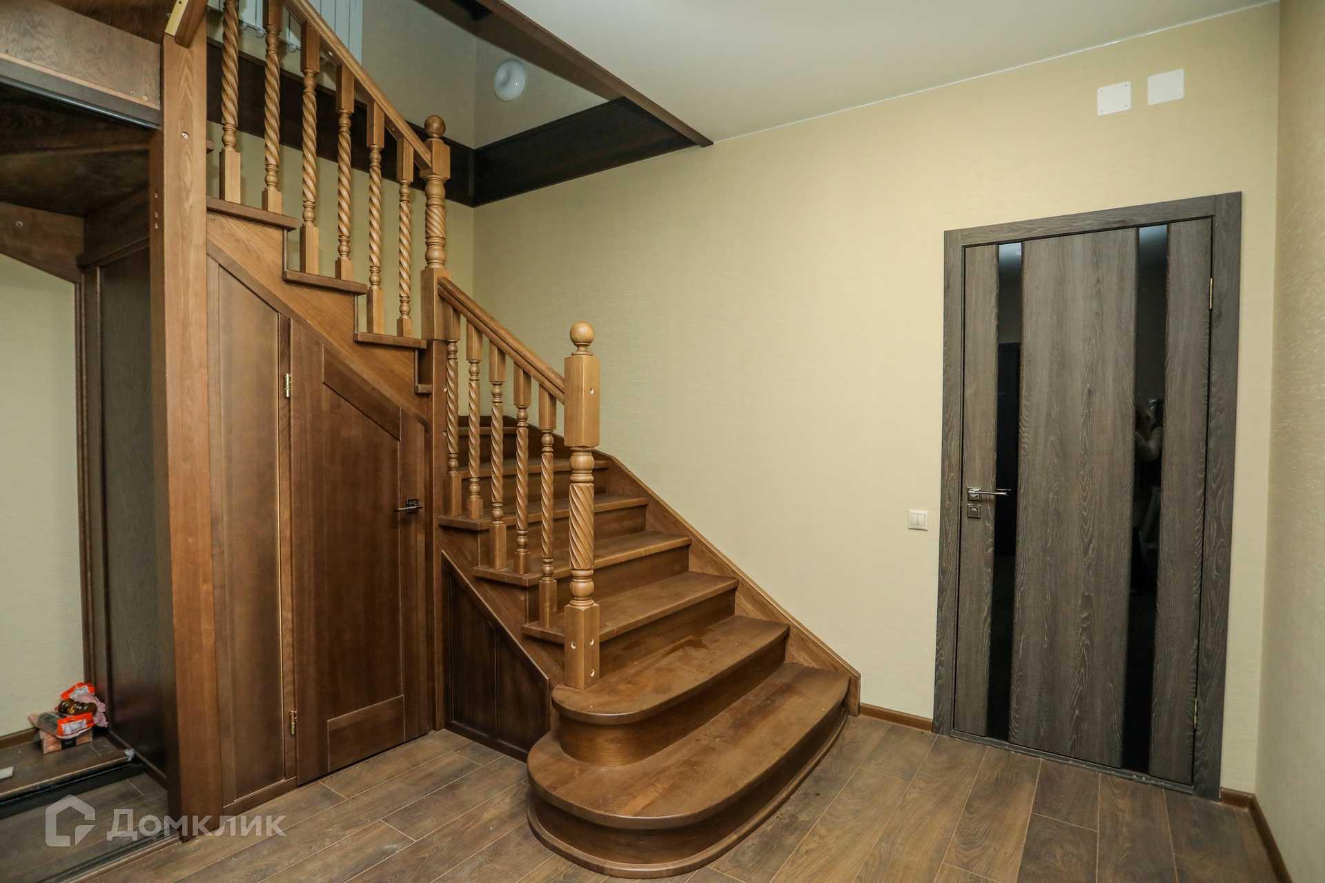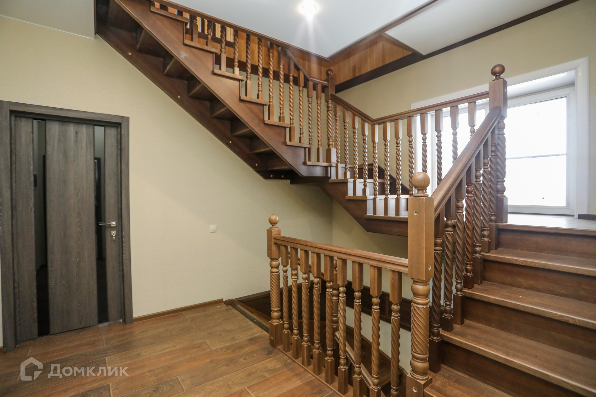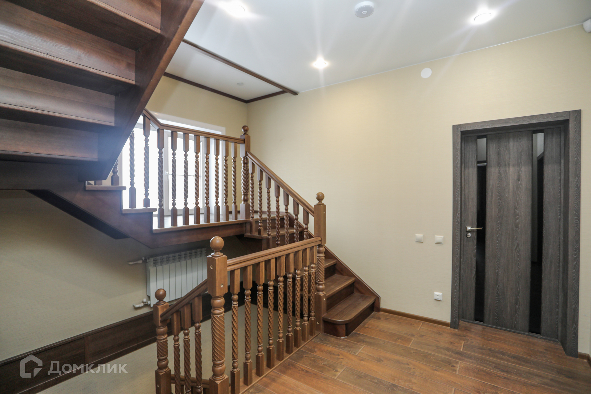 - Установлена шикарная винтовая лестница от 1-го до 3-го этажа из массива дуба.