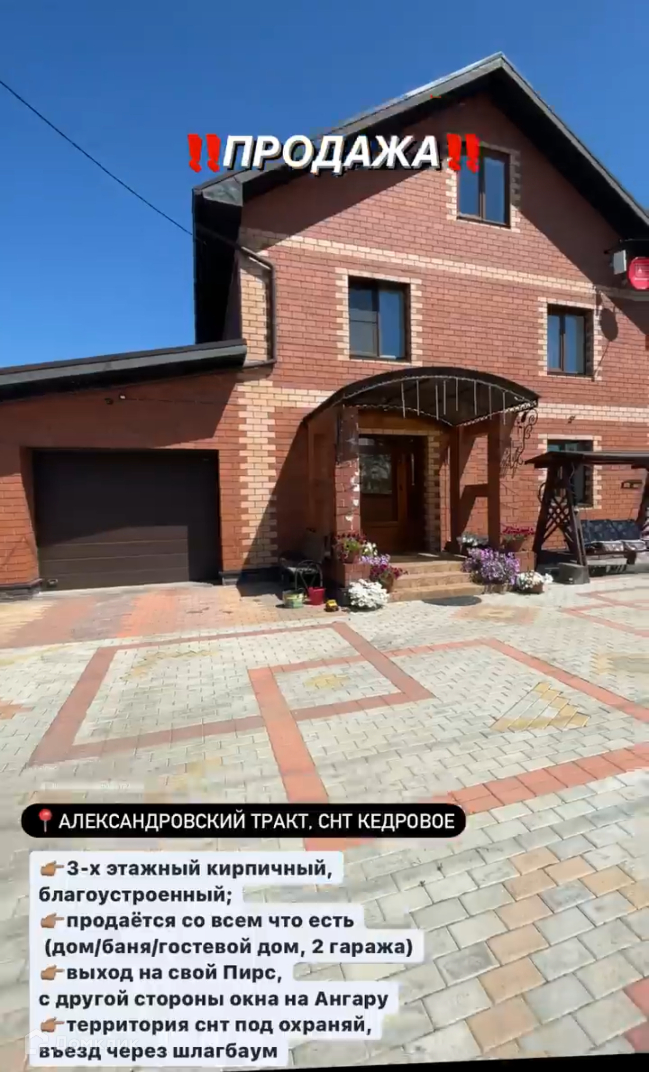 1) Расположение: на 8-ом км Александровского тракта, в тихом, красивом и экологически чистом месте, ДНТ Кедровое . Изумительное место: вид на р. Ангару, лес, чистейший воздух, рядом несколько родников. Закрытая от посторонних глаз территория ДНТ.