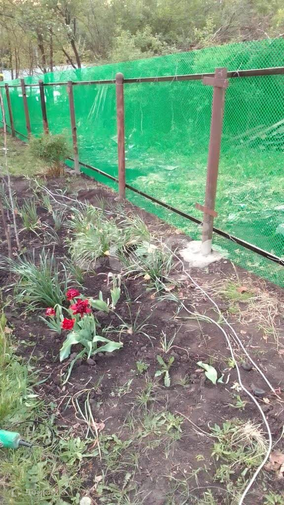 На участке растут плодовые деревья, ягоды, овощи, цветы.