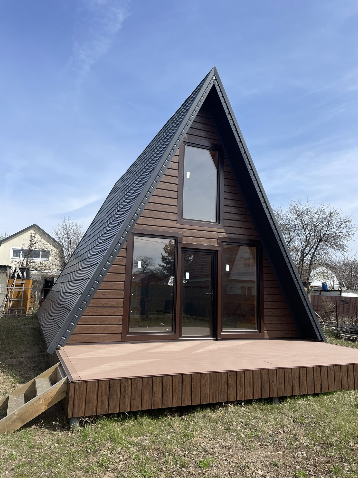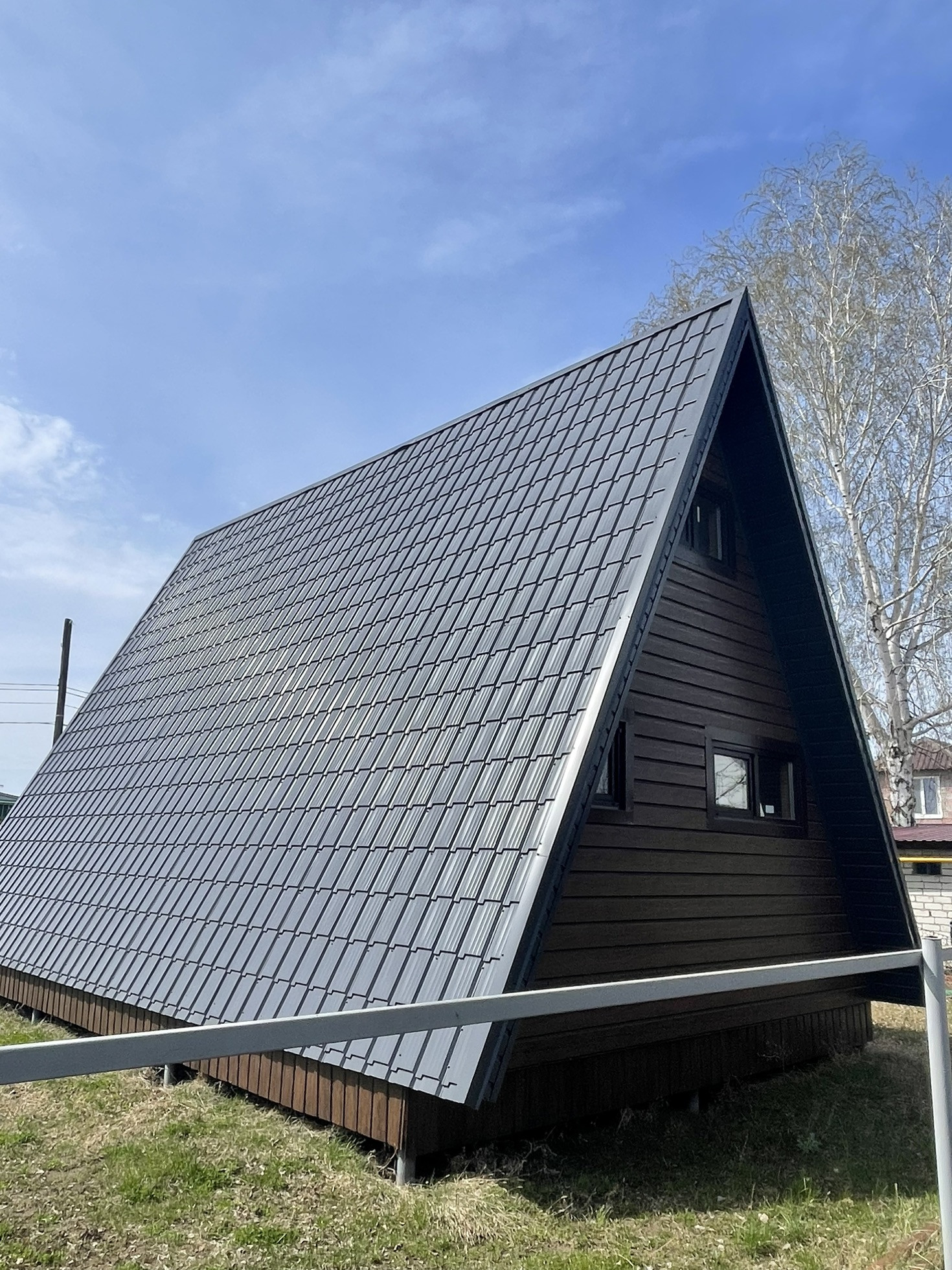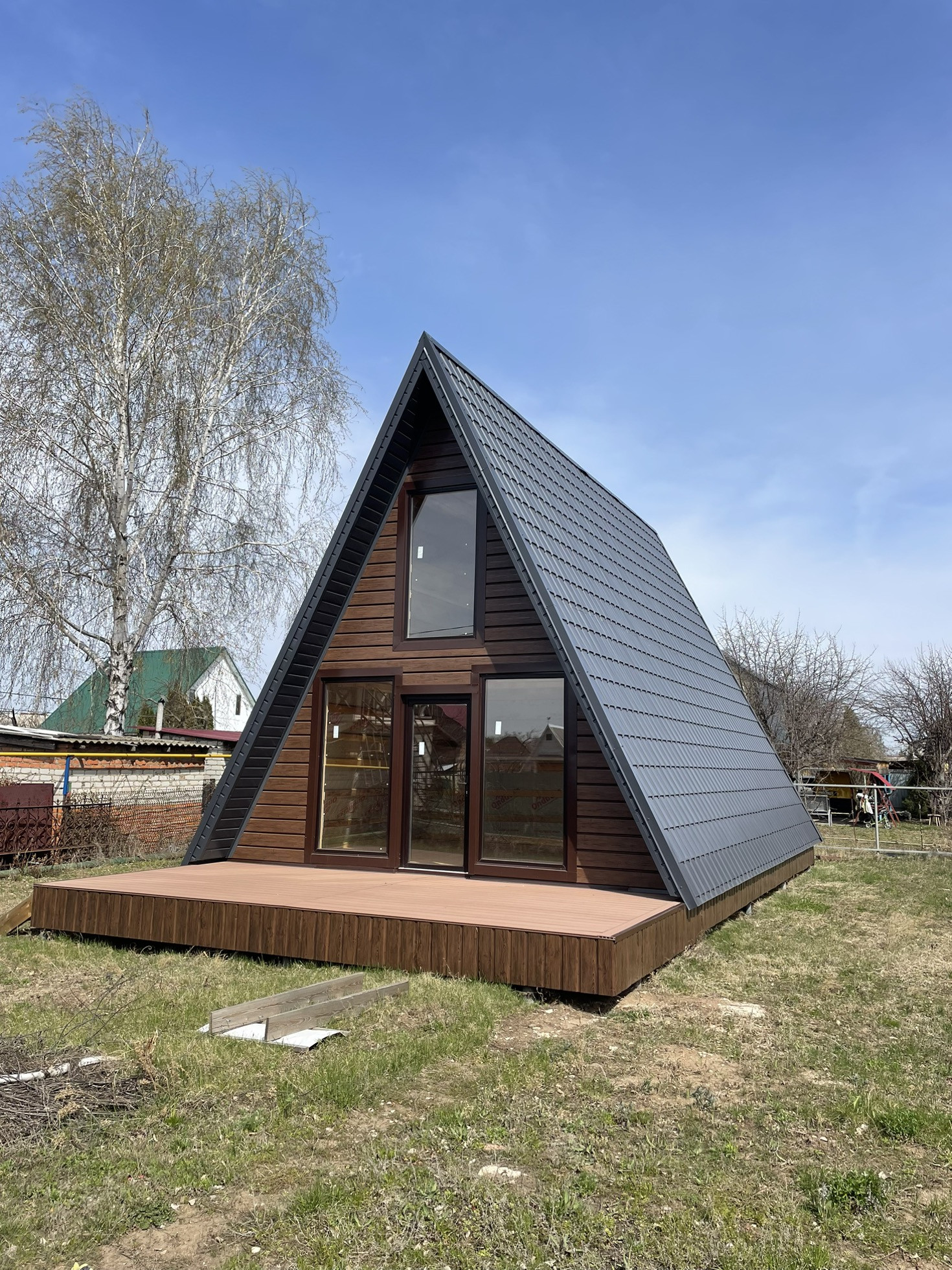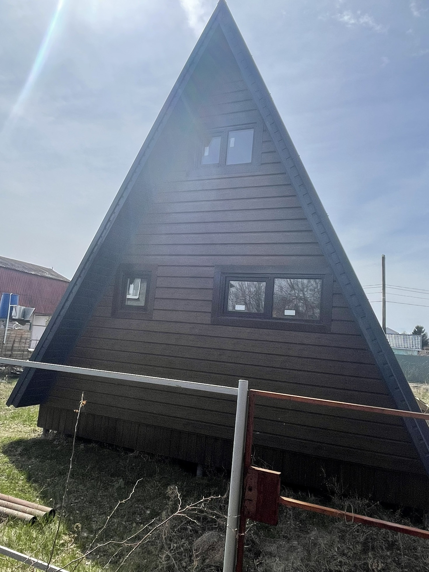 Необычный дом в стиле А-фрейм в СНТ Керамзит-2,рядом пляж на Саратовке,вдали от города,асфальтовая дорога,газ по границе,соседи живут круглый год,можно организовать готовый бизнес с прибылью от 100000руб в месяц