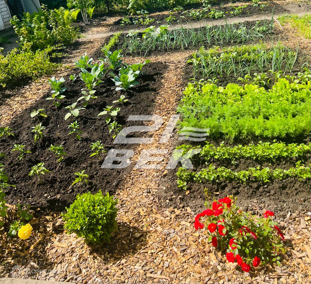 На даче плодово-ягодные и декоративные насаждения: слива, персик, клубника, малина, хосты, розы и т.д.