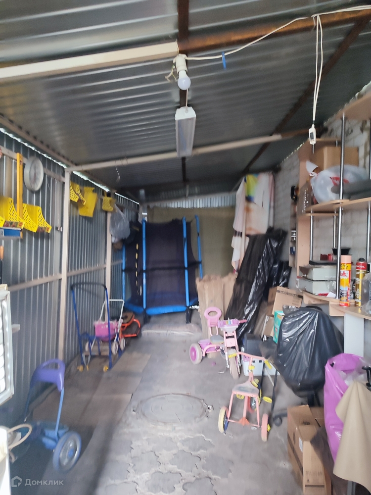 Справа от домика сделан гараж из  металлопрофиля, а слева обуродован открытый заезд для автомобиля.