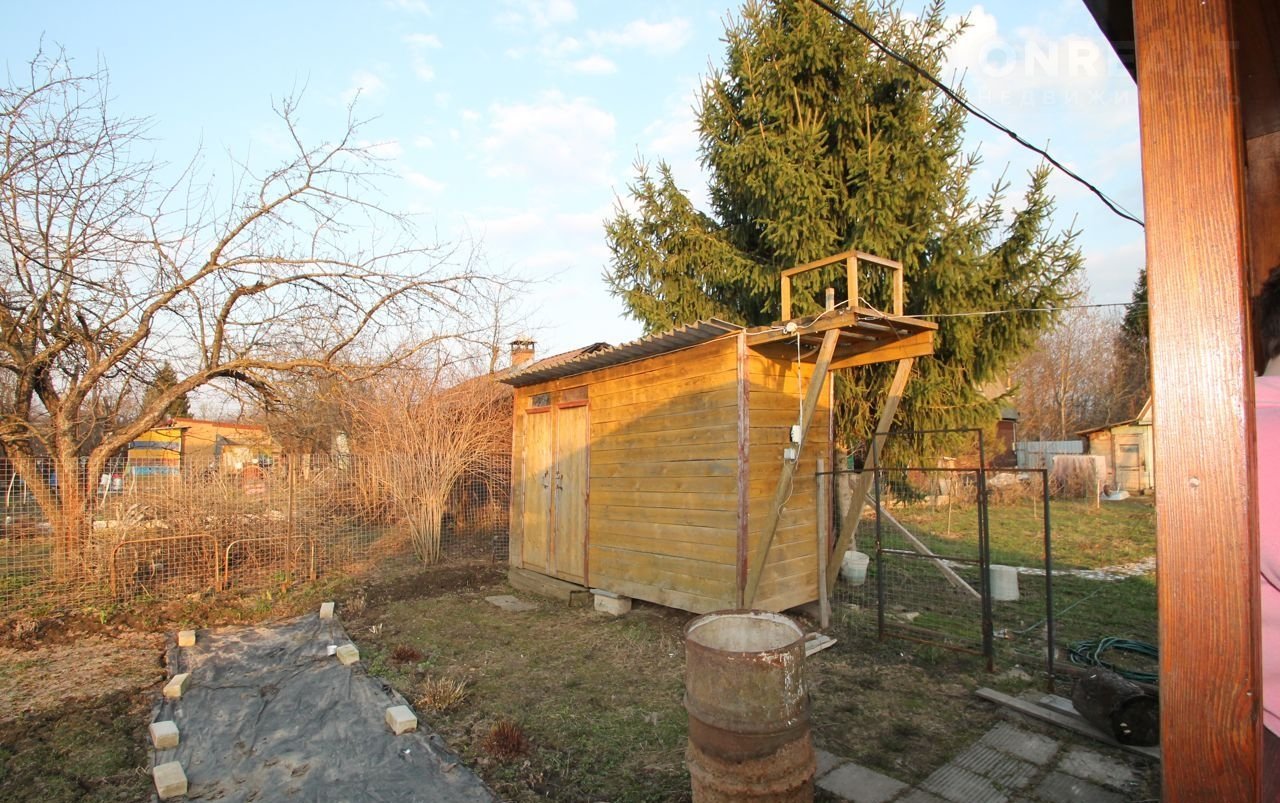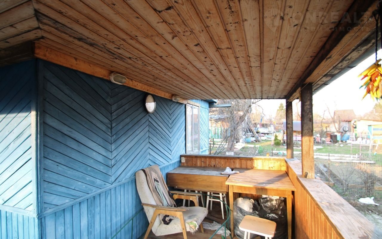 Дом общей площадью 42.5 кв.м, на ленточном фундаменте, каркасный, пристроена открытая веранда. Оформлен как не жилой.