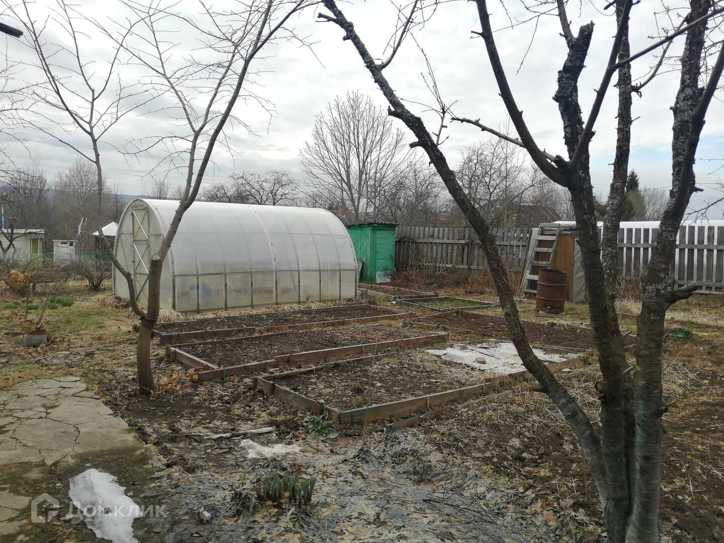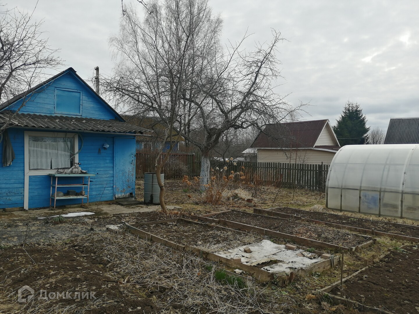 Много плодовых кустов и деревьев. Есть хорошая теплица, хозпостройка, уличный туалет и небольшой курятник