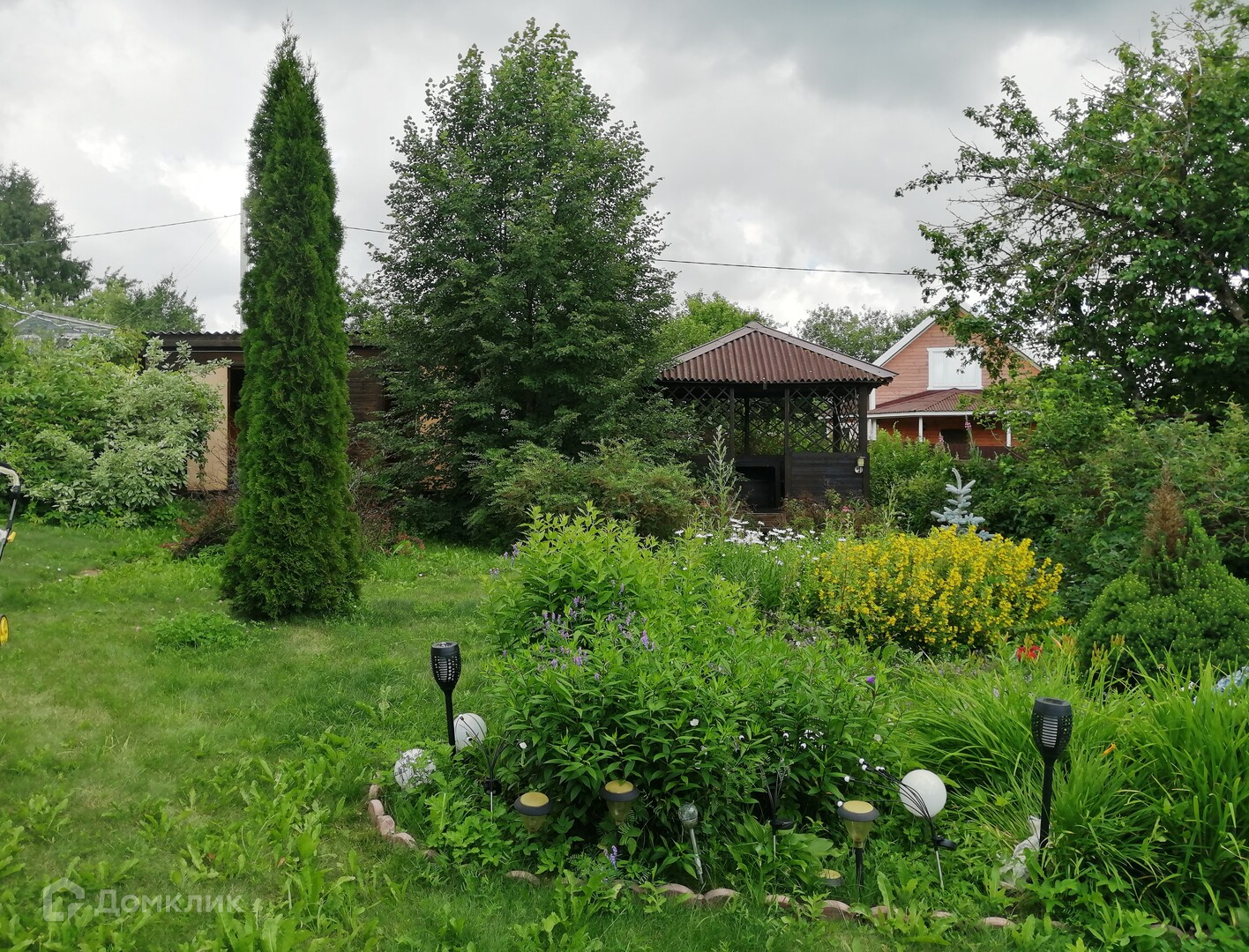 На участке есть беседка с мангальной зоной, бытовка, для хранения садового инвентаря.