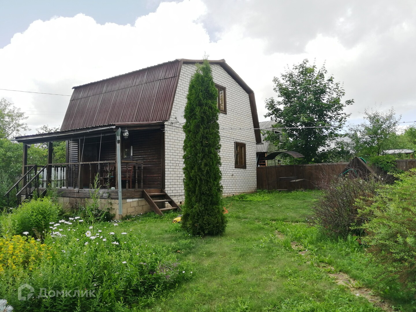 Дом оформлен, как дачный, построен по каркасной технологии, снаружи обложен кирпичем . Фундамент ленточный железобетонный, дом утеплен.