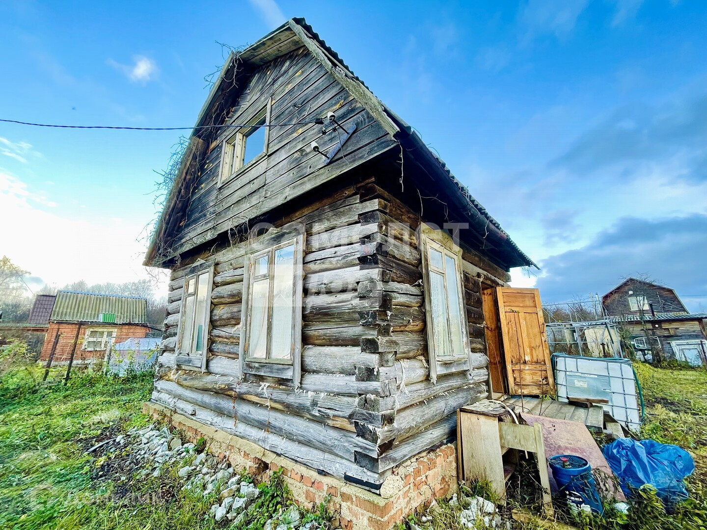 Двухэтажный дачный летний дом, площадь 33.8 кв.м, из бруса.Земельный участок:Участок общей площадью 1038 кв.м, ровный, сухой, огорожен забором из проф. листа.Дополнительные постройки: На участке сварен и покрашен металлический каркас для беседки, новый уличный туалет.
