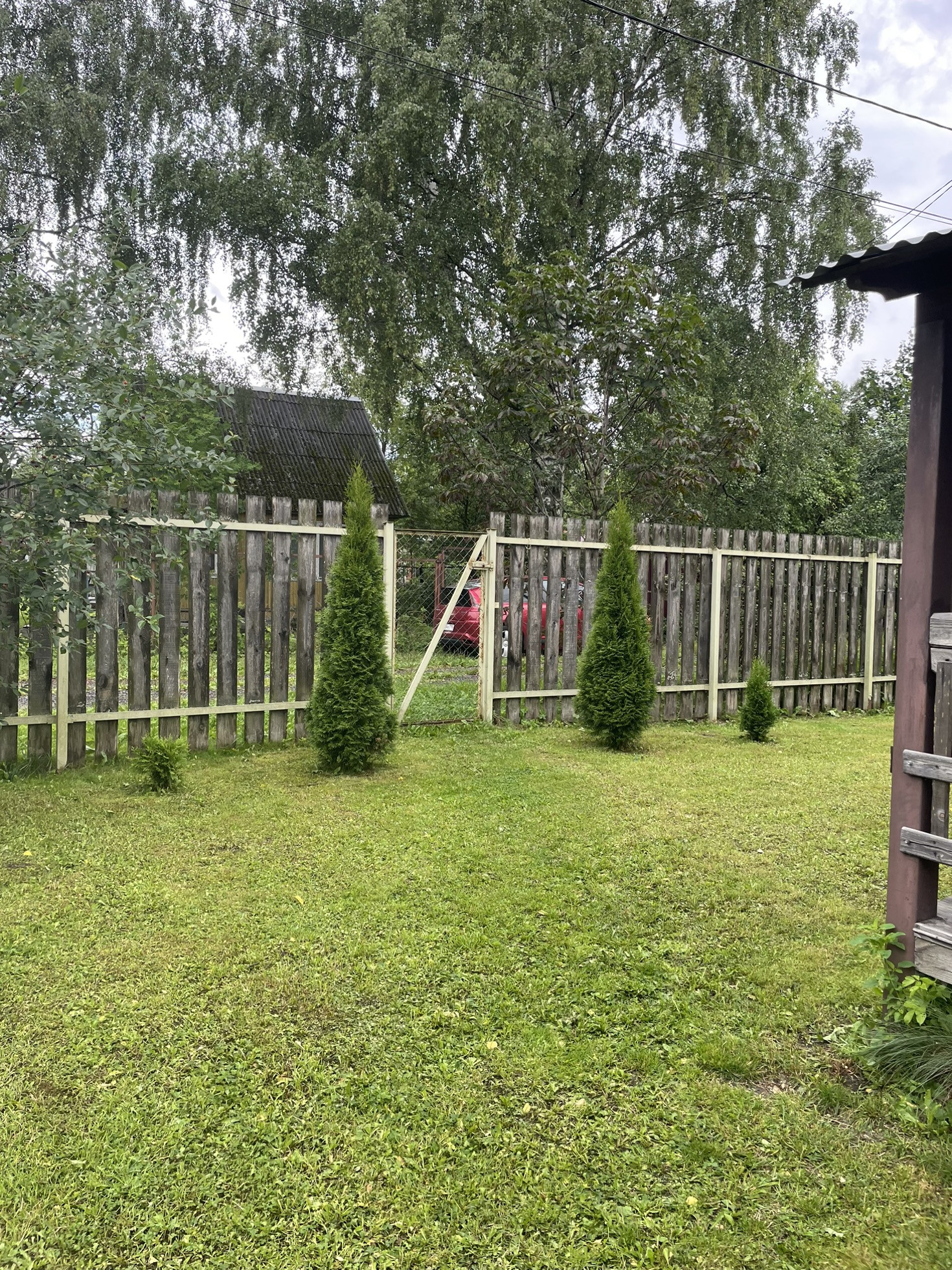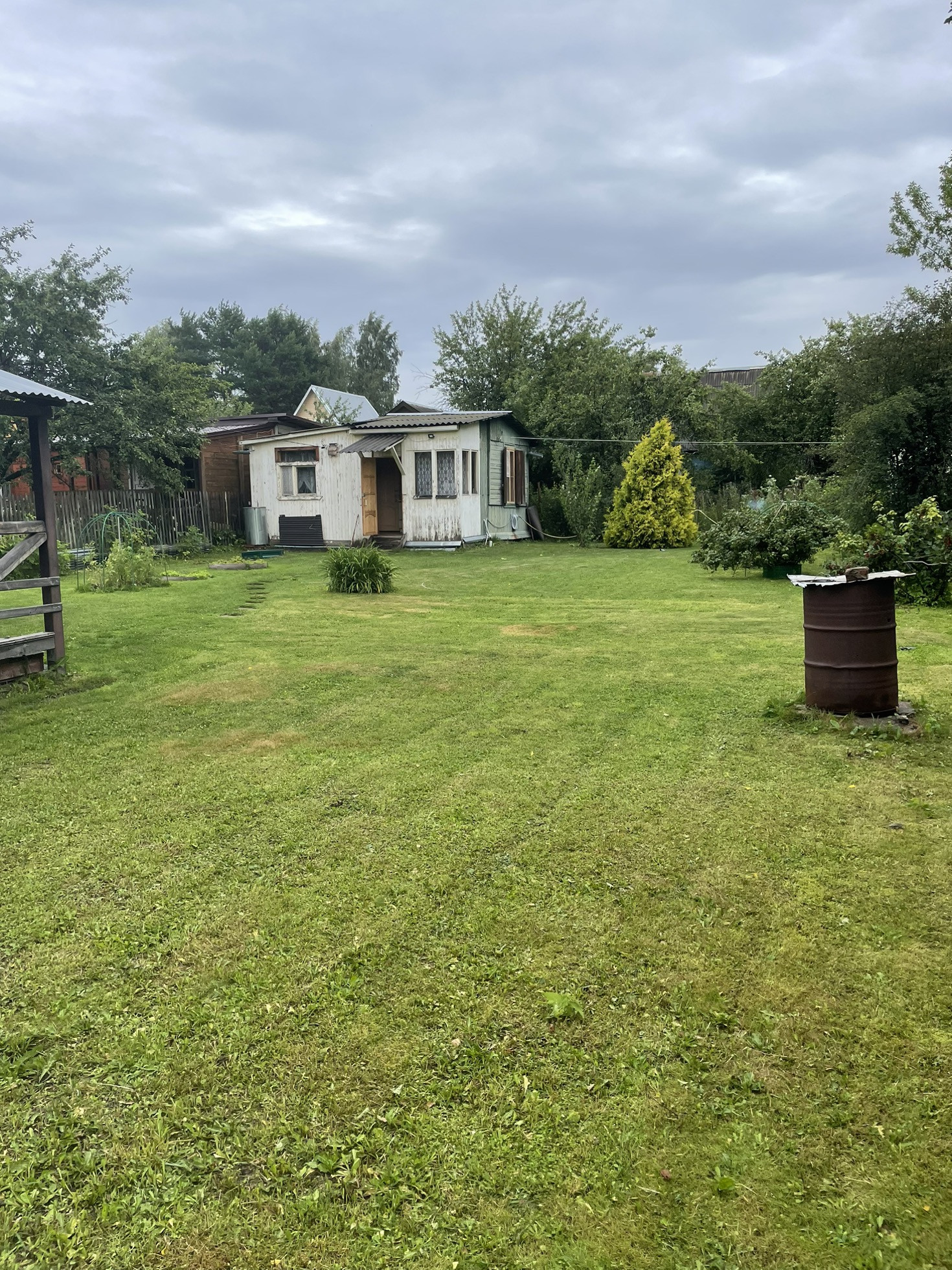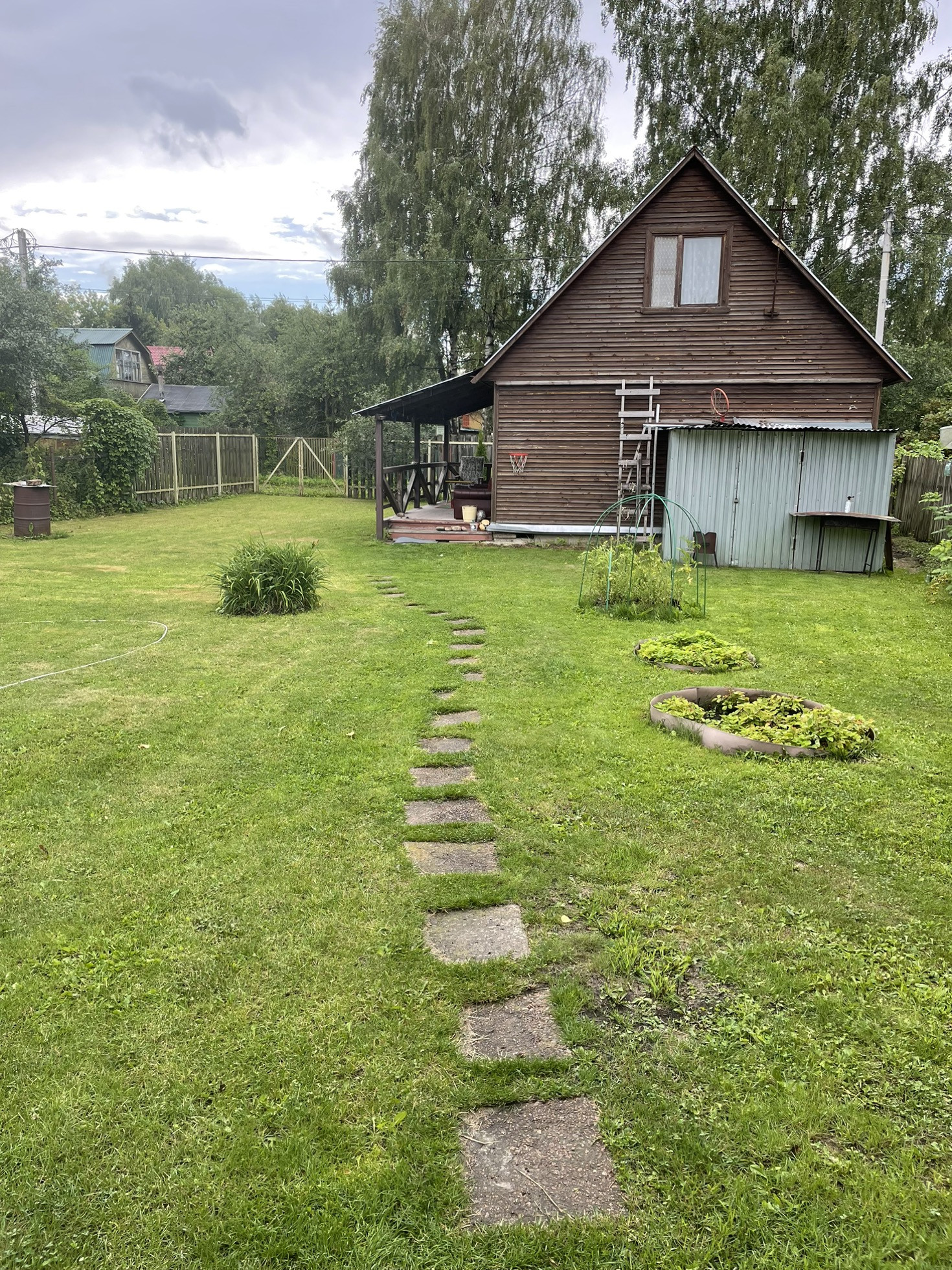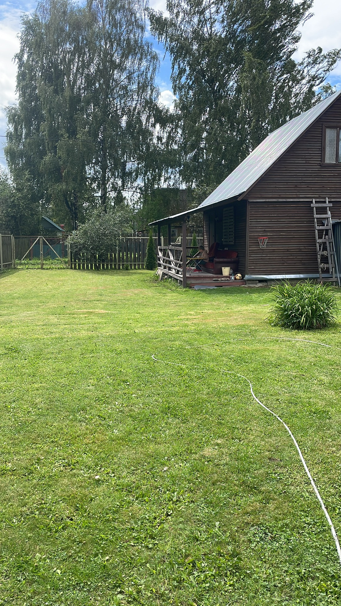 Дача находится в живописном месте. Прекрасные соседи. Участок ухоженный, солнечный, ровный, правильной прямоугольной формы. На участке посажены кусты черной и красной смородины, ирга, земляника, вишня, малина. Два дома: один двухэтажный на ленточном фундаменте, утепленный, с летней верандой (дом строили мы в 2006 году на новом фундаменте); второй гостевой дом с кухней, столовой и спальней. Душ (бо