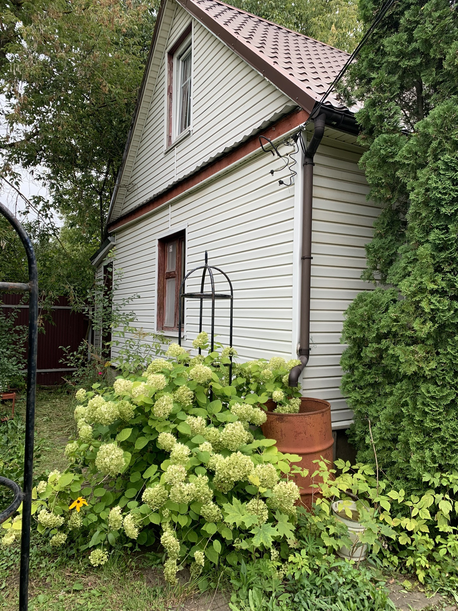 Антоновка, слива, крыжовник, смородина, шиповник, цветы и пр., чернозем привозной.