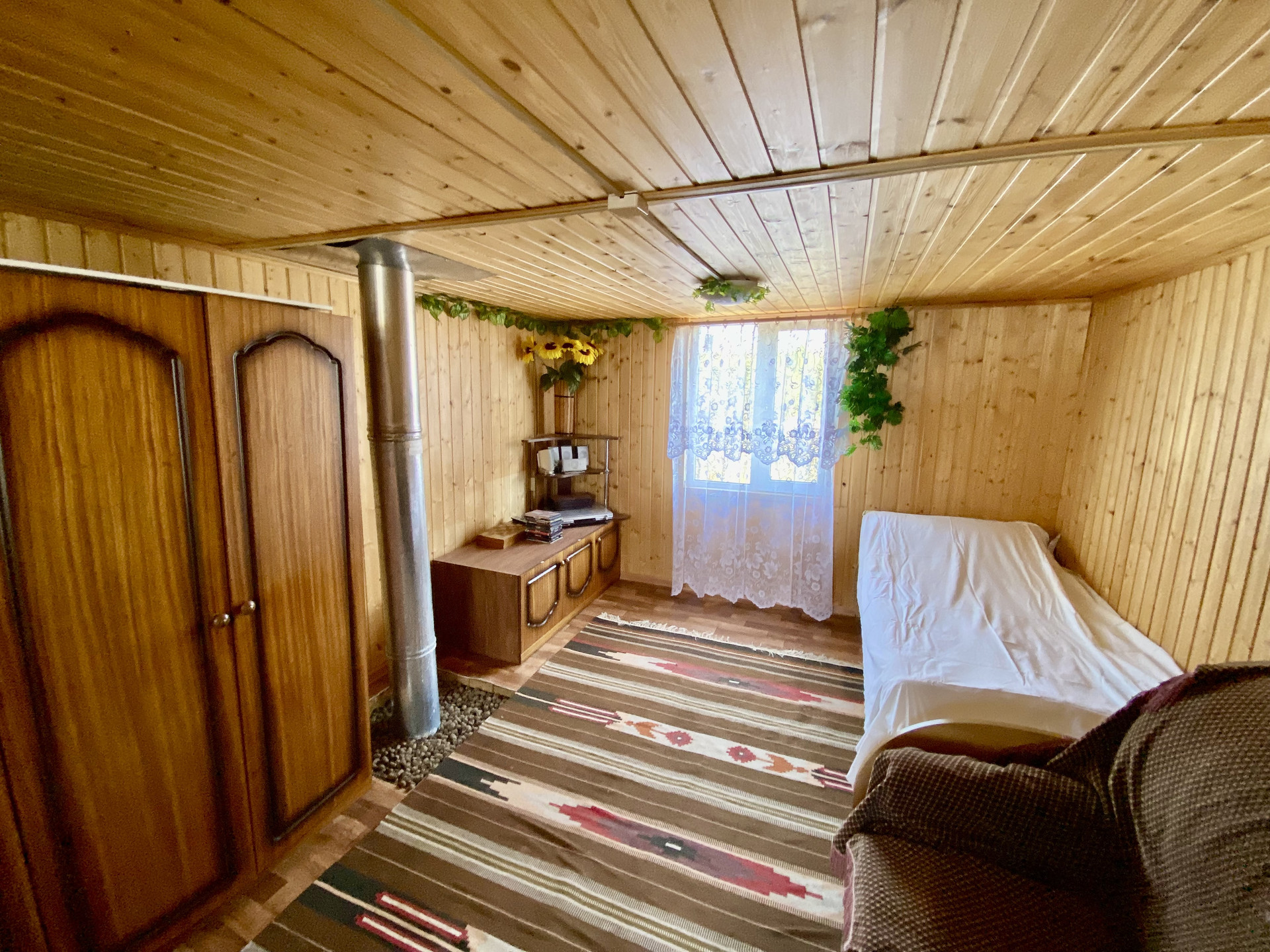 На участке также есть летний дом. 2 комнаты, кухня с печкой, веранда.